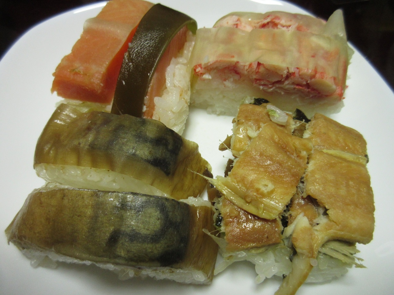 鯖寿しは燻製の物を、穴子寿司、カニ寿司