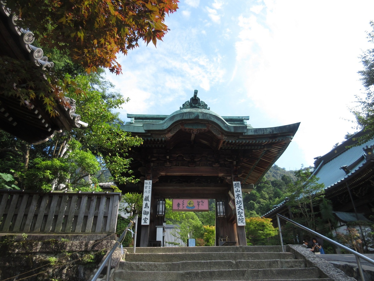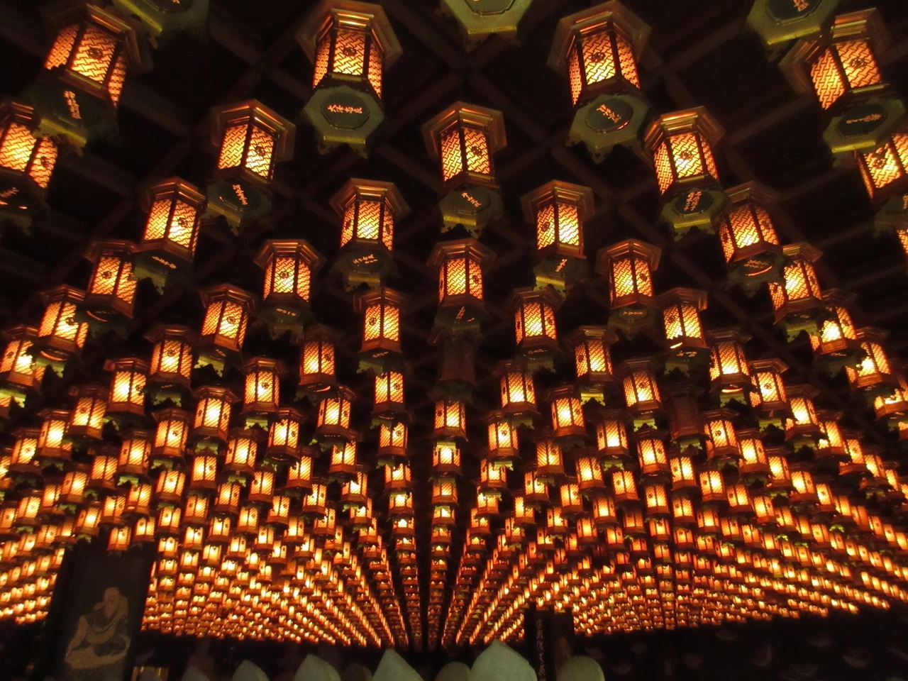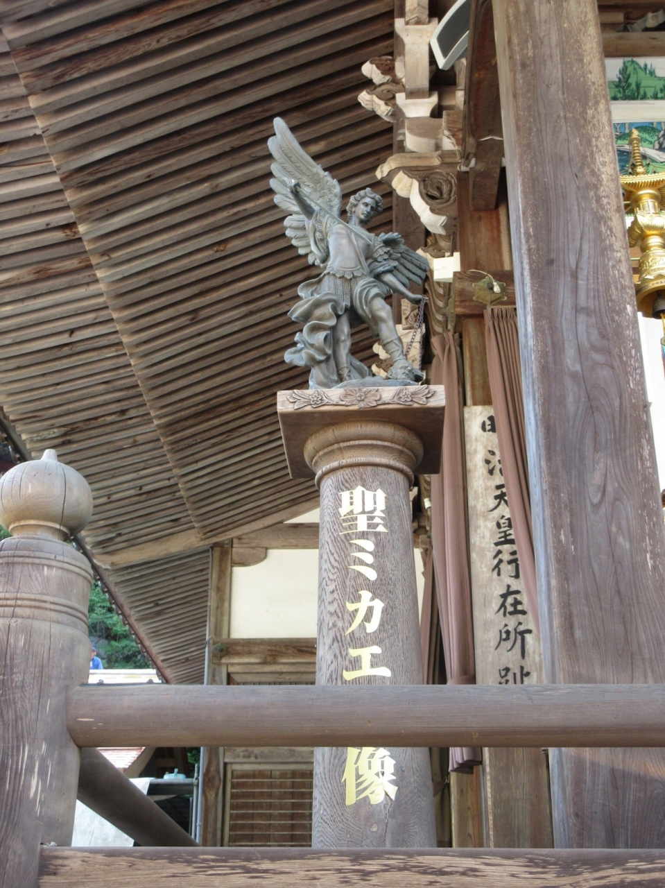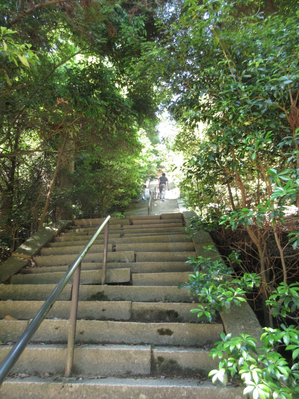 本堂へ繋がる長い階段には、仏陀の弟子たち