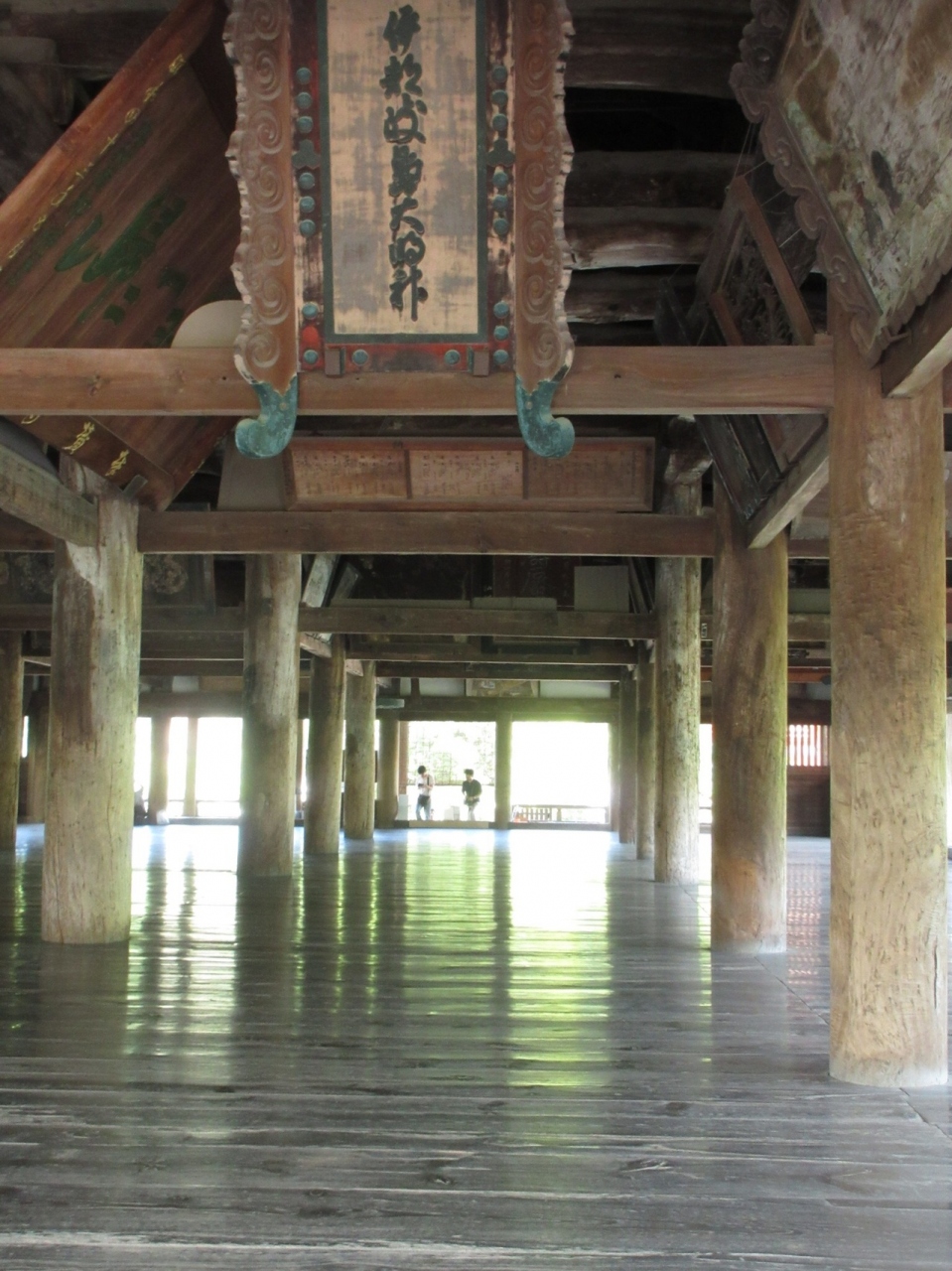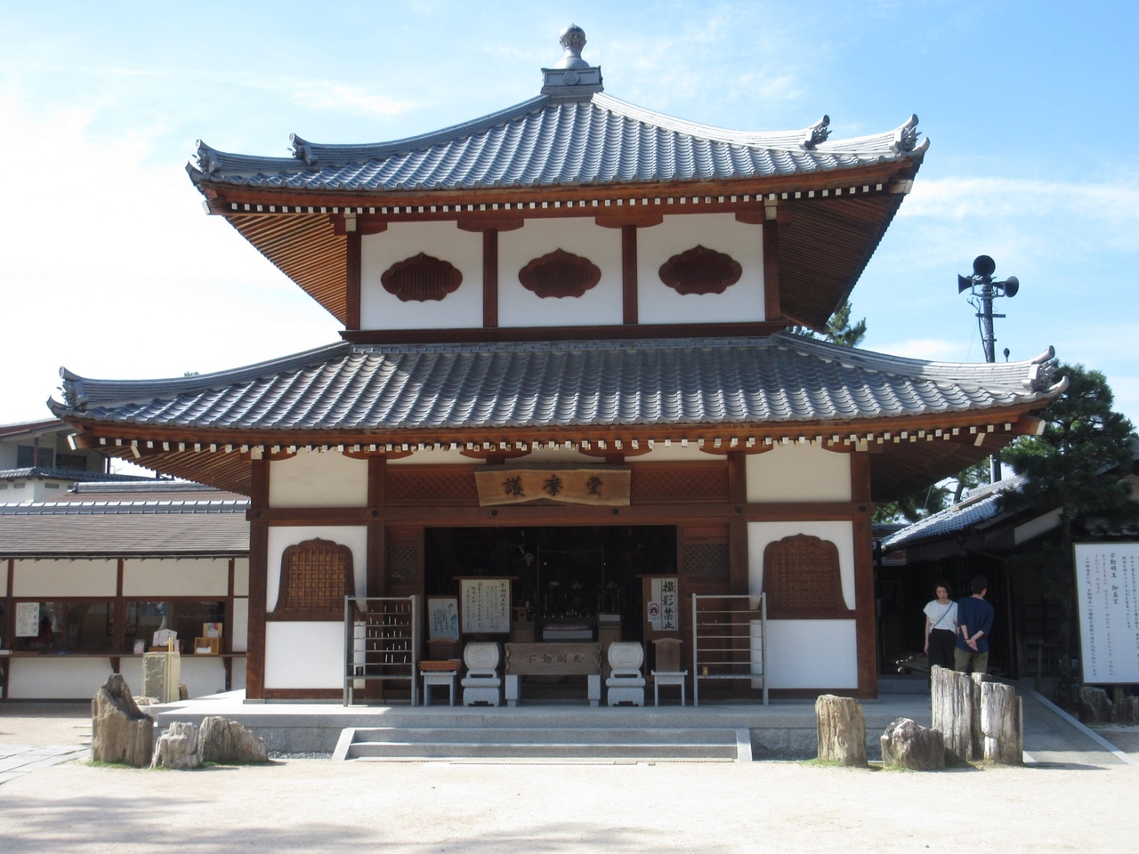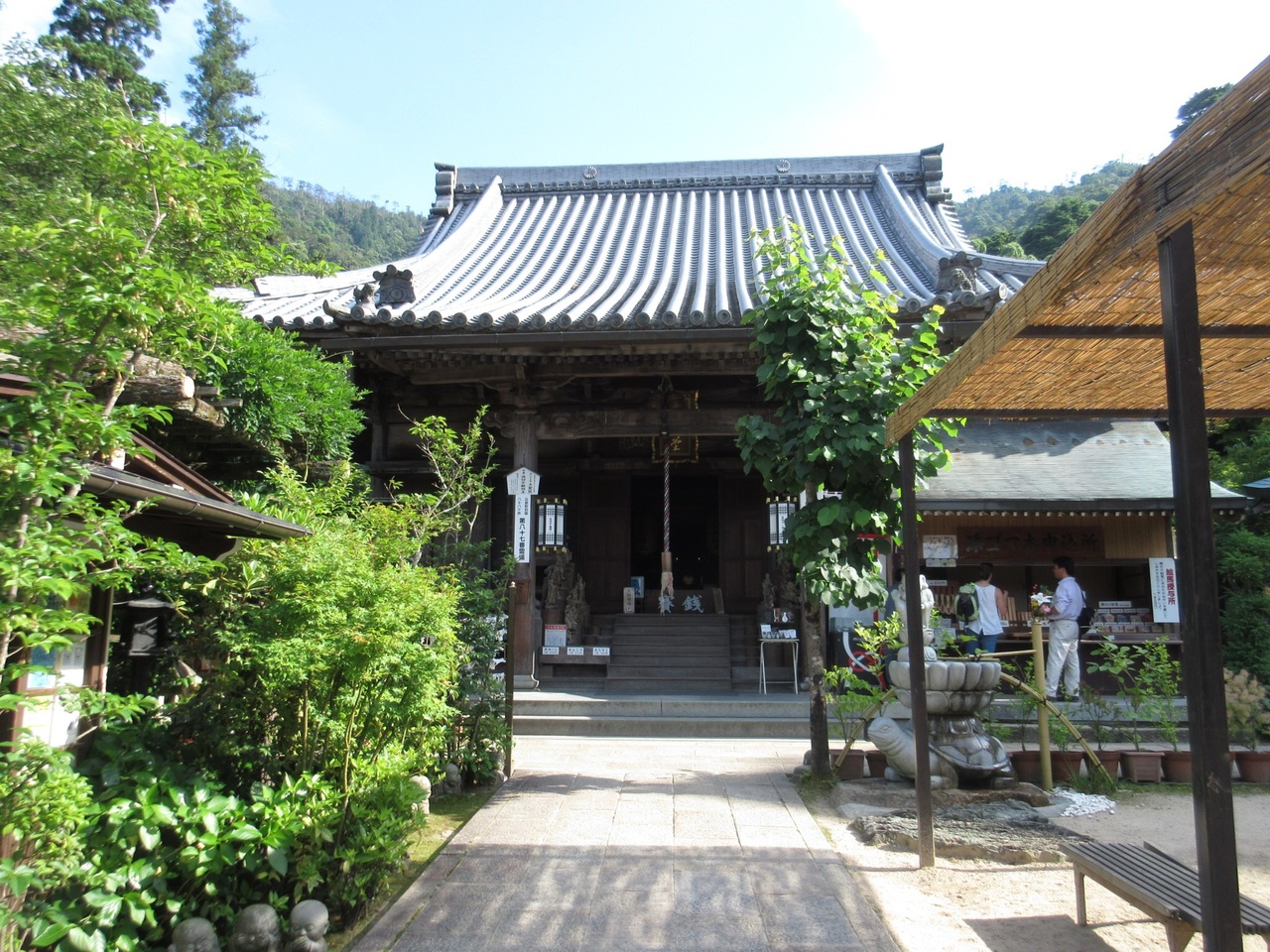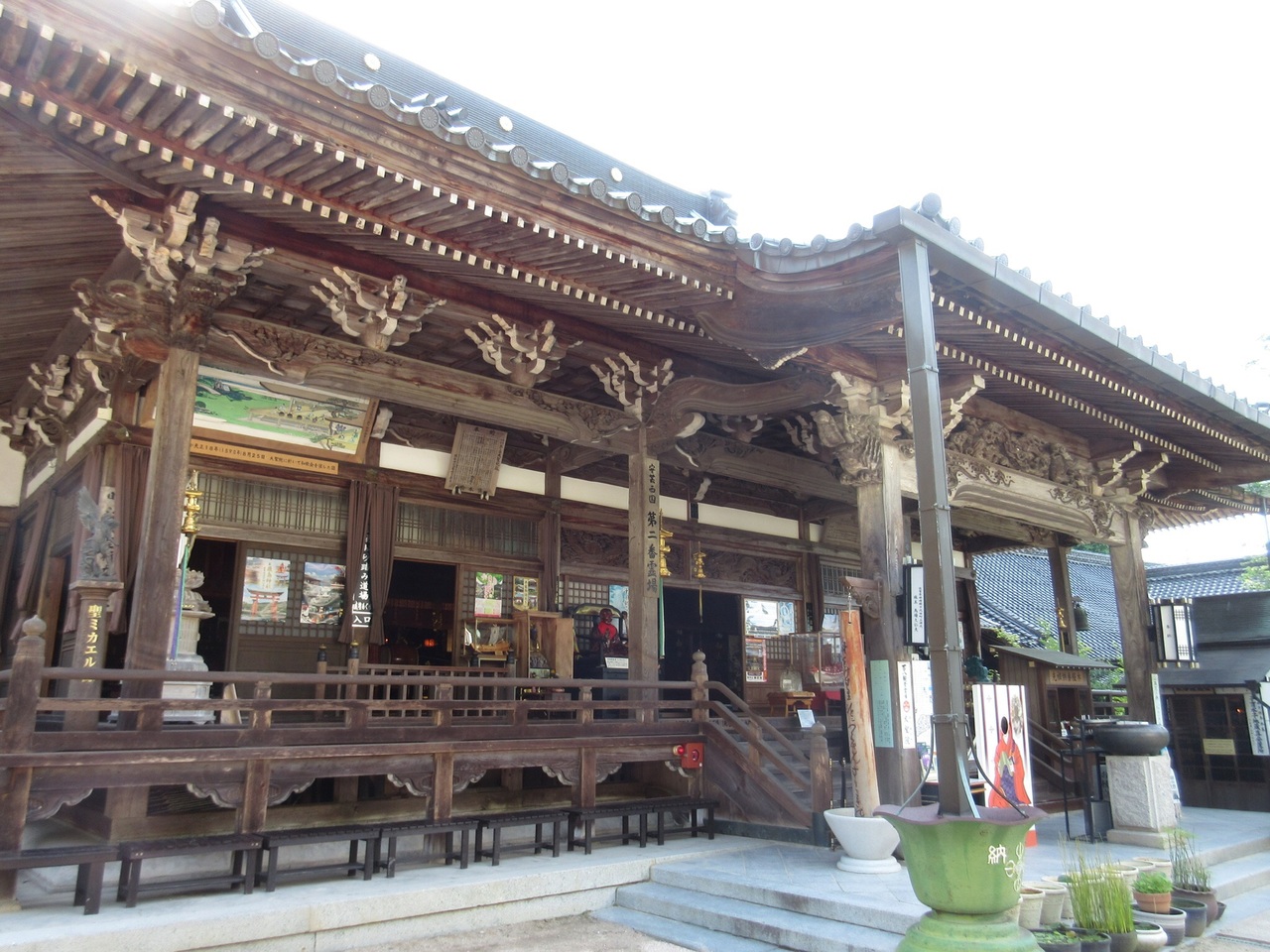 本堂へ繋がる長い階段には、仏陀の弟子たち