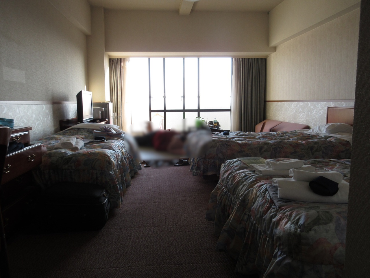 ベッドが3つ、畳の上に布団を2つ敷いて
