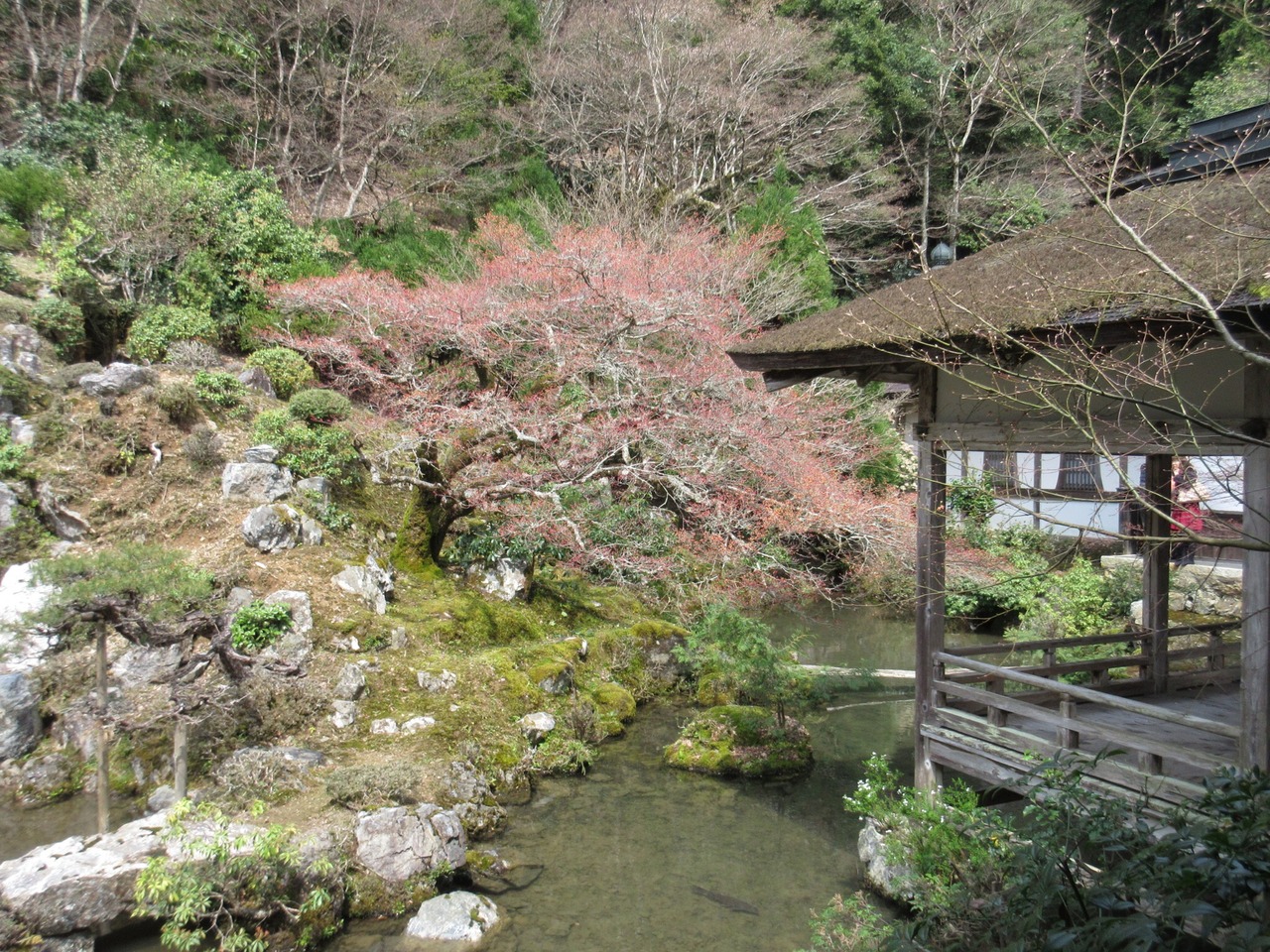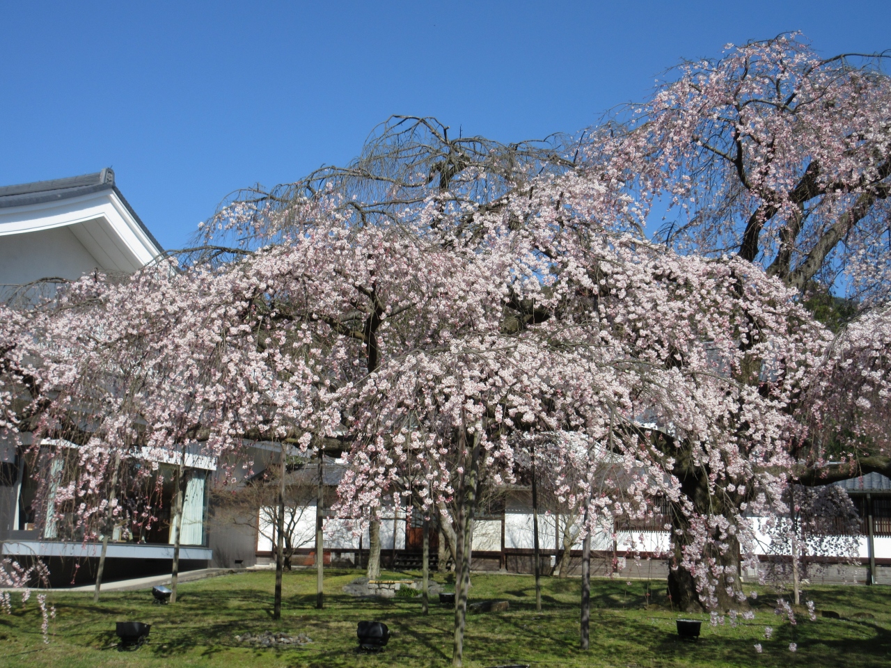 方丈前の「御車返しの桜」は咲き始めたばかり