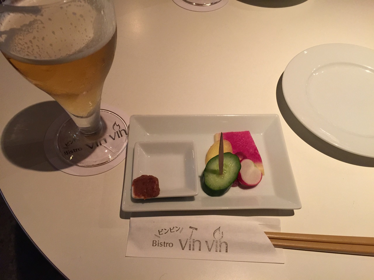 前菜盛用のお皿がセッティングされていました。