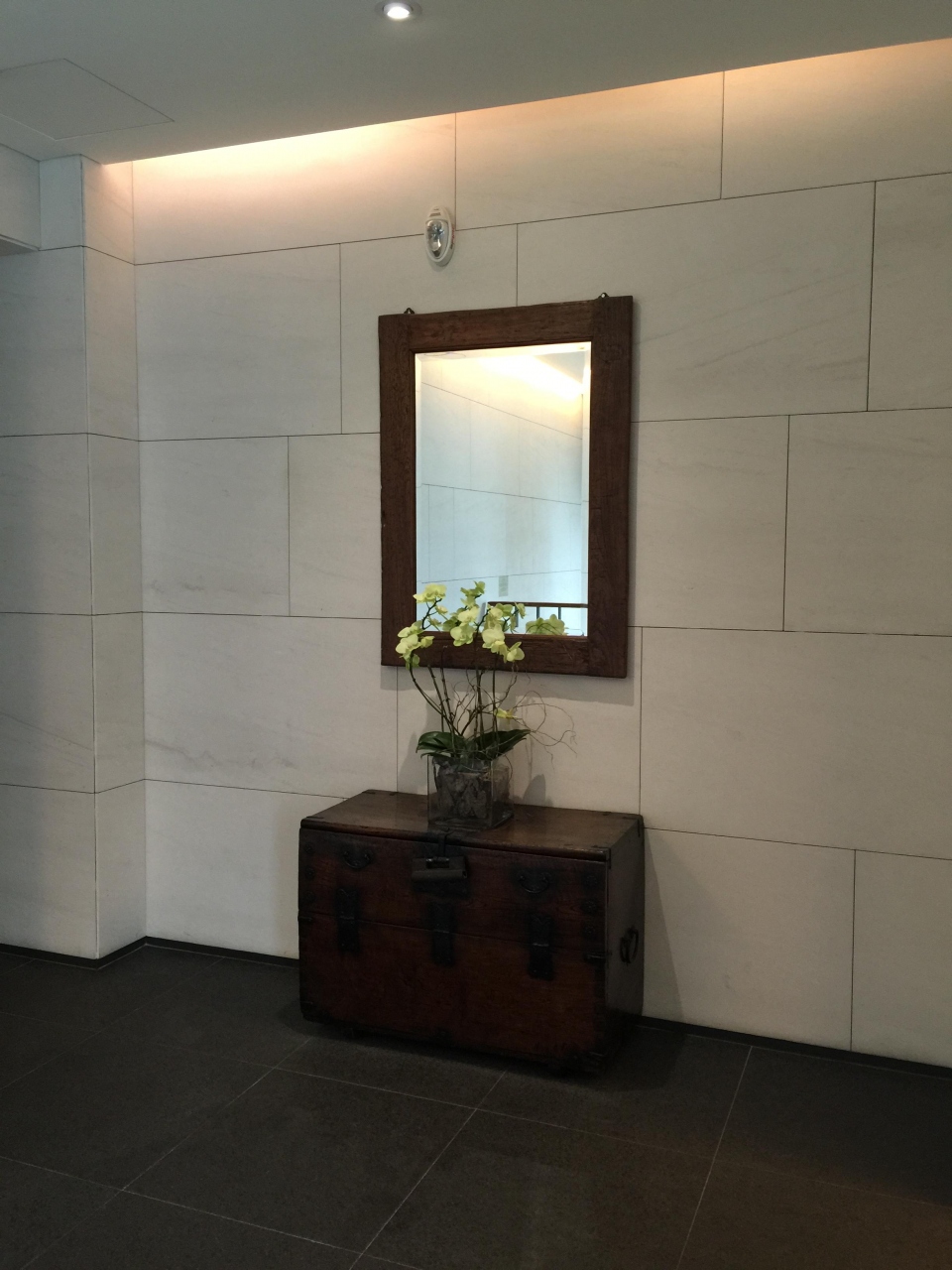 本堂の床が瓦の様なもので出来ていて