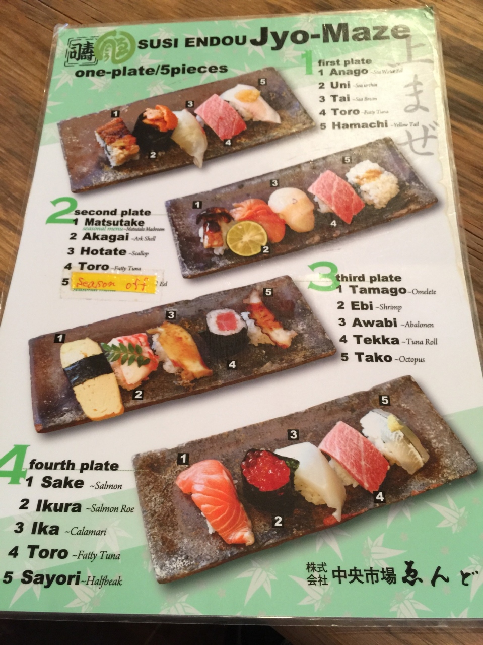 一皿に5貫。?〜?まであります。