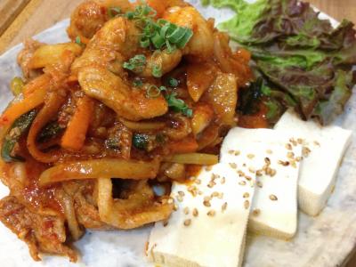 チャプチェ、海鮮チヂミ、豆腐キムチ