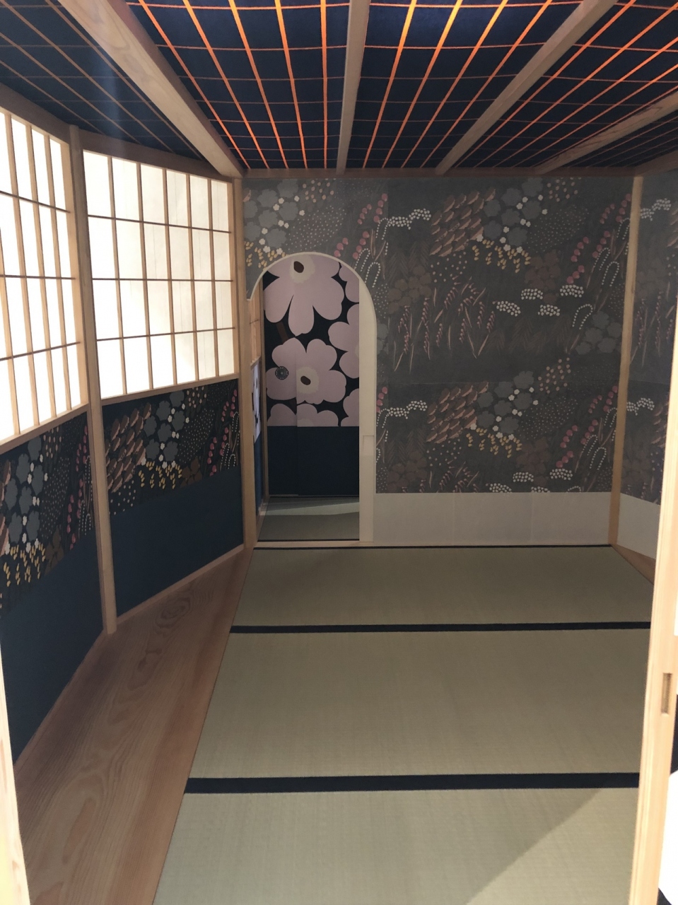 マリメッコのパターンの展示や
