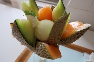 私は、季節のメロンパフェを頂きました。