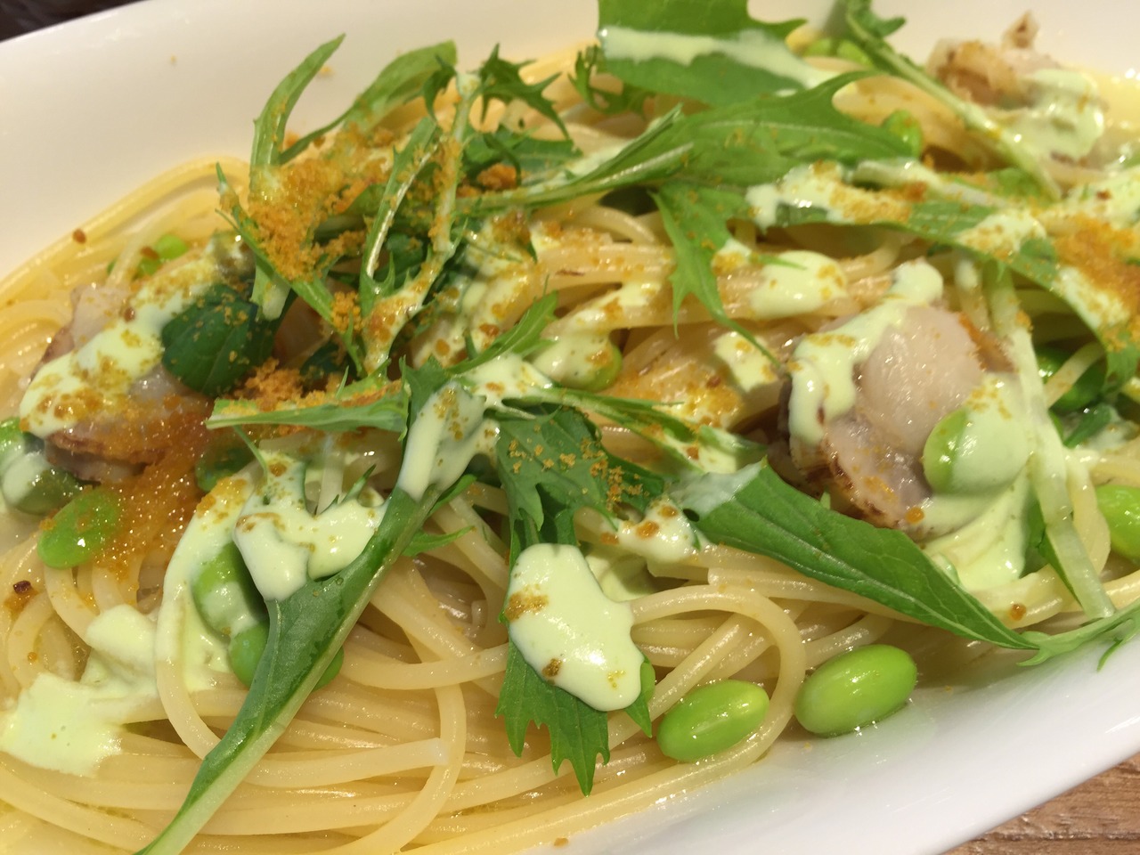 • 黒枝豆とカラスミのアーリオオーリオ ♪