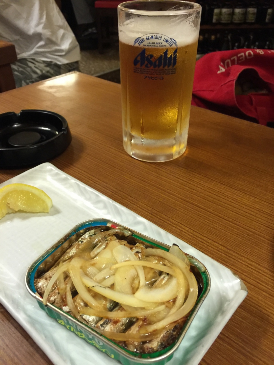 私たちはビールとオイルサーディンを
