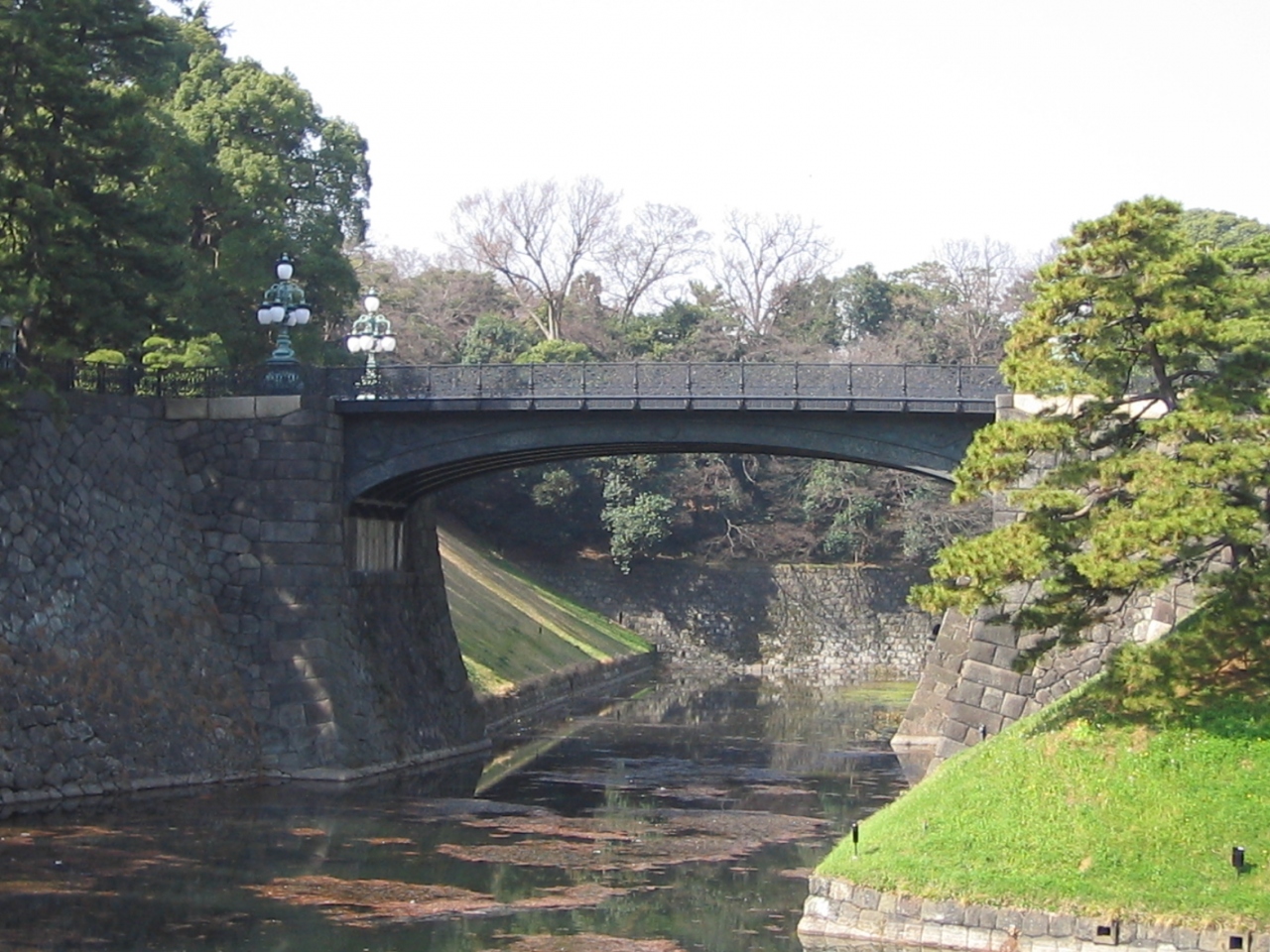 奥の黒い鉄橋が二重橋とは…