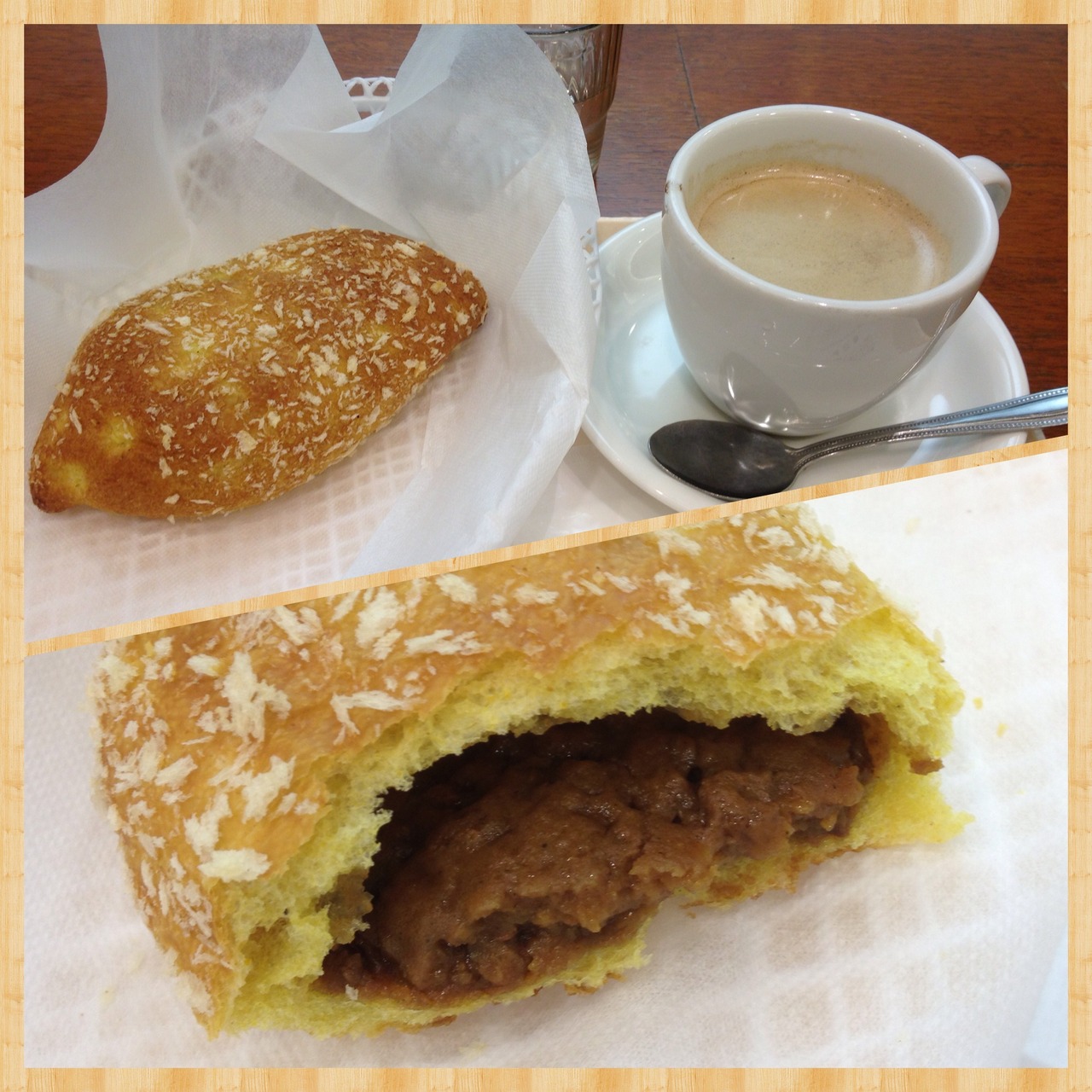 カレーパンと珈琲を頂きました。