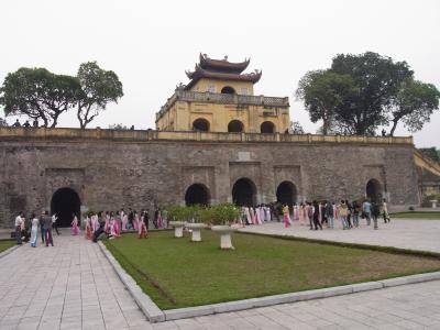 タンロン遺跡世界遺産です。タンロンはかつてのハノイの名前。市内からアクセスがよく旧市街とホーチミン廟の間くらいにあります。中には入れませす。ローカルの学生さんがアオザイをきてみんなで記念撮影をしています。