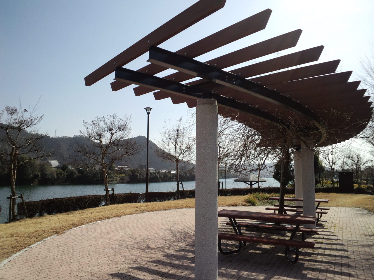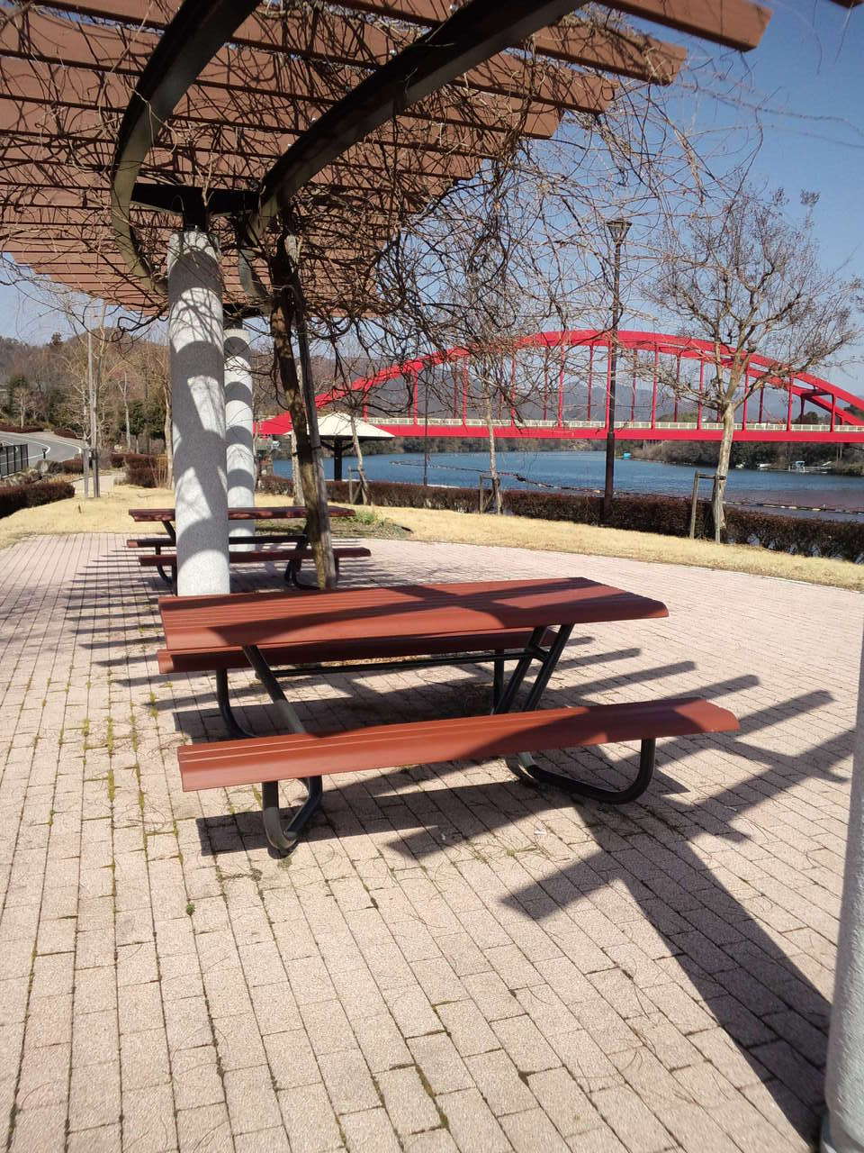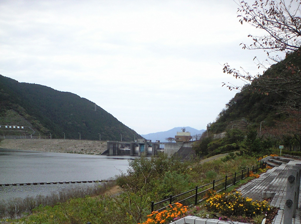 国道沿いにダム公園の大きな駐車場があり、そこから階段をちょっと降りればダム湖が見える公園です。