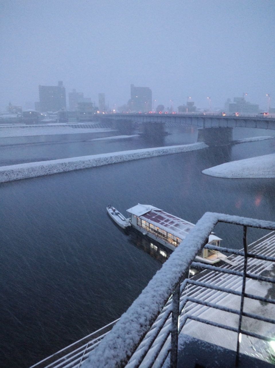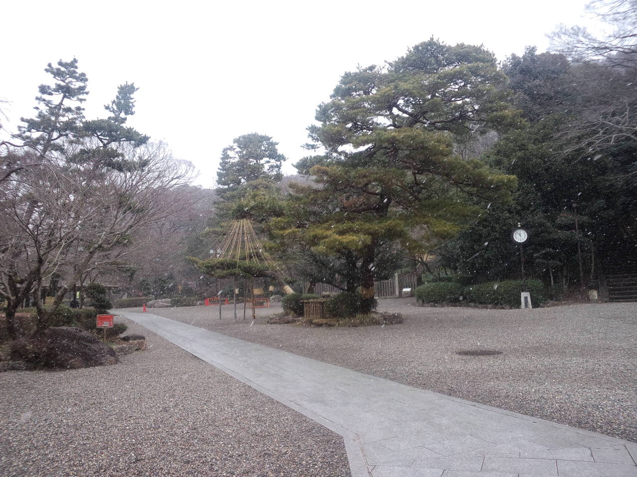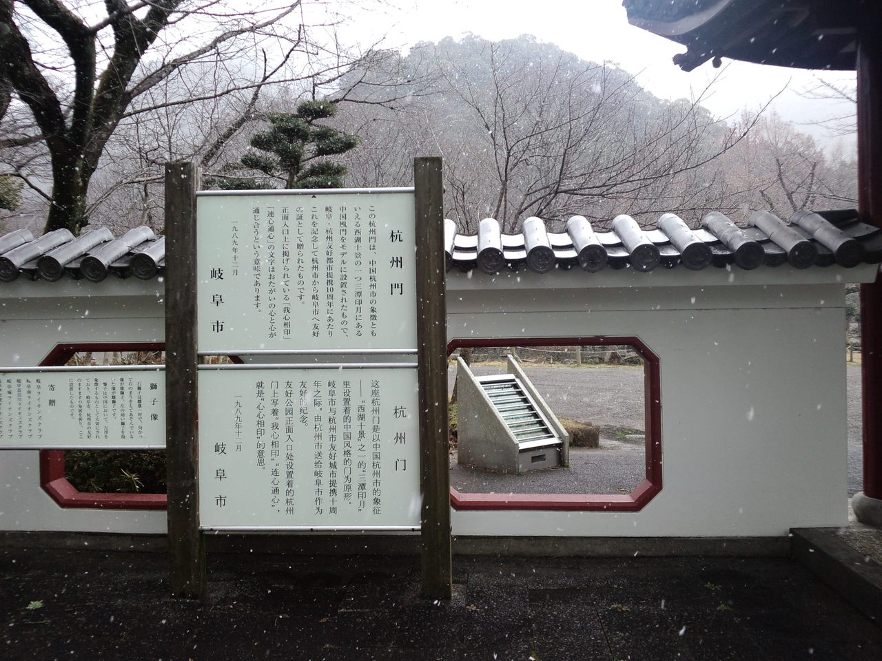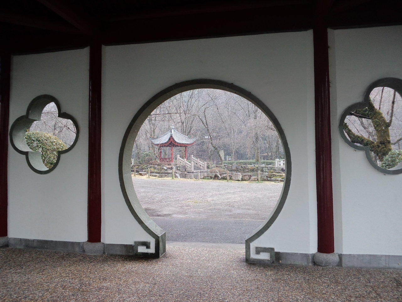 端のほうに中国風の庭園があるのですが、道路を一本はさんでいるせいもあるのか、ここまで来る人は少ないようで静かな場所です(真冬の雪降りなので余計ですね )