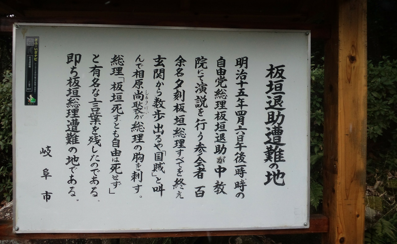 「板垣死すとも・・」という強烈なフレーズから、その場で暗殺されたのだと思い込んでましたが、手当てを受け数日で岐阜を後にして、その後80代まで生きています。(事件が起きたのは40代の頃)