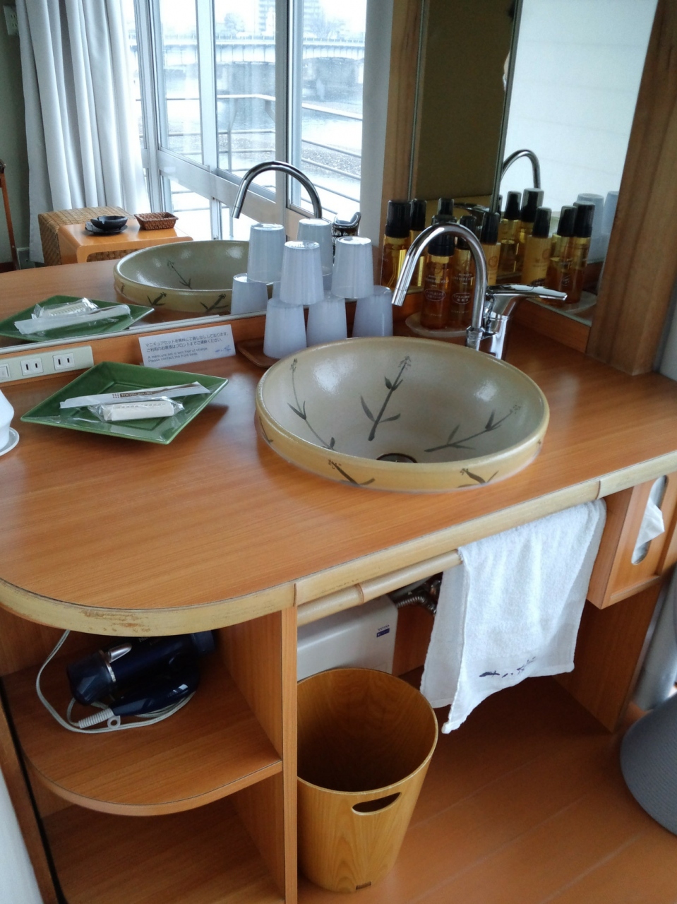 夕食抜きの格安プランでの利用でしたが、平日で空きがあったのか、川側の部屋でうれしかった~。お茶やお菓子、アメニティーもきちーんと揃っていて、さすがな感じ。