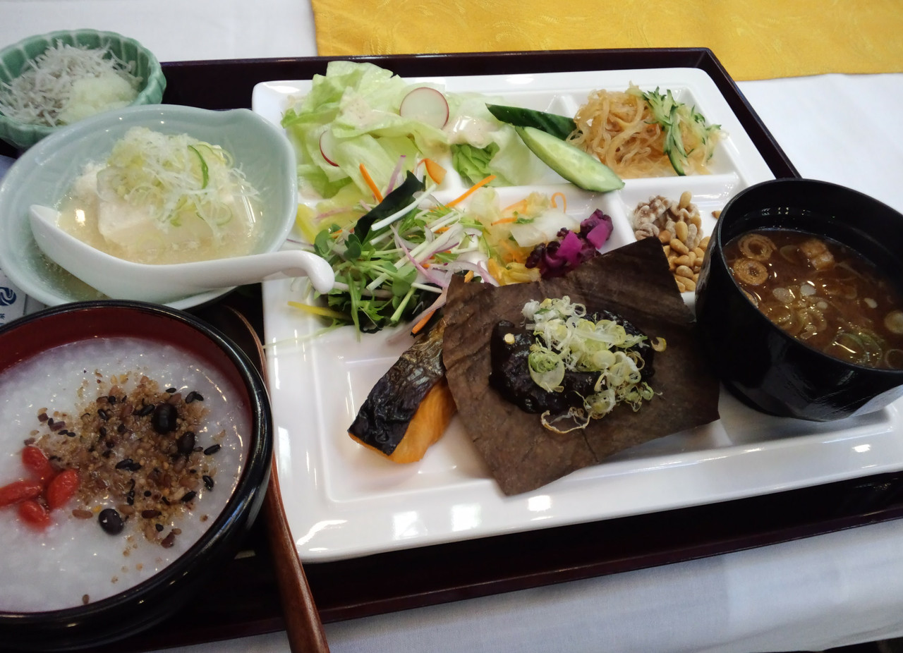 朝食はビュッフェスタイルで、薬膳メニューのようなヘルシーなものもあり、お粥がおいしくてお代わりしました。パンケーキや目玉焼きも目の前で焼いてました。スタッフがたくさんいて汁ものなどはついでくれましたし、なくなりそうなのは早めに補充してくれて熱いもの冷たいものを気持ち良く食べれました。