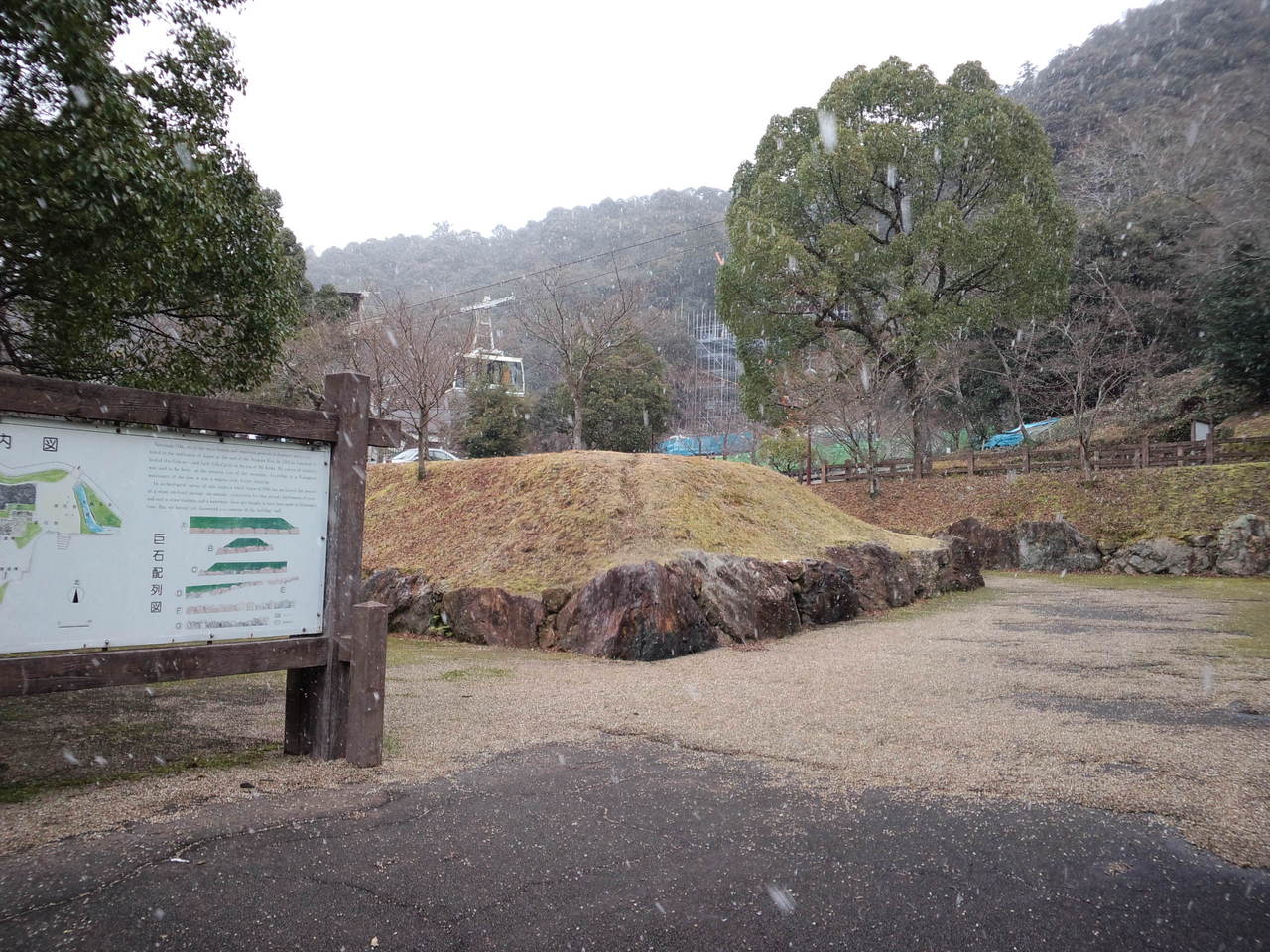 大きな門をくぐって石段を上がると大きな石を積んだ礎石のようなものの上に盛り土がしてあり、所々青色のビニールシートが被せてあったりして発掘途中のようですね。