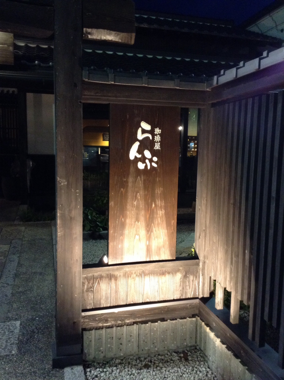 土蔵造りのような趣きのある外観とシックな店内でゆっくりとコーヒーを味わえる、らんぷさん。