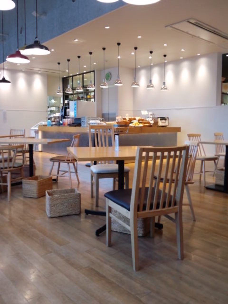 インテリアがシンプルでどこかの家庭のダイニングキッチンのようなコンセプトなのかな。明るく開放感のある店内です。