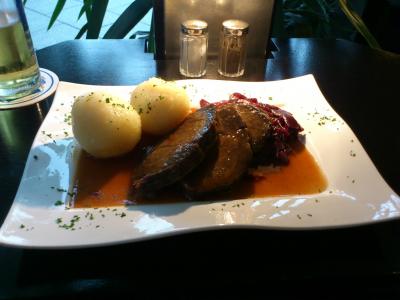 一皿で満腹です。ザウアーブラーテンは食べきれませんでした。