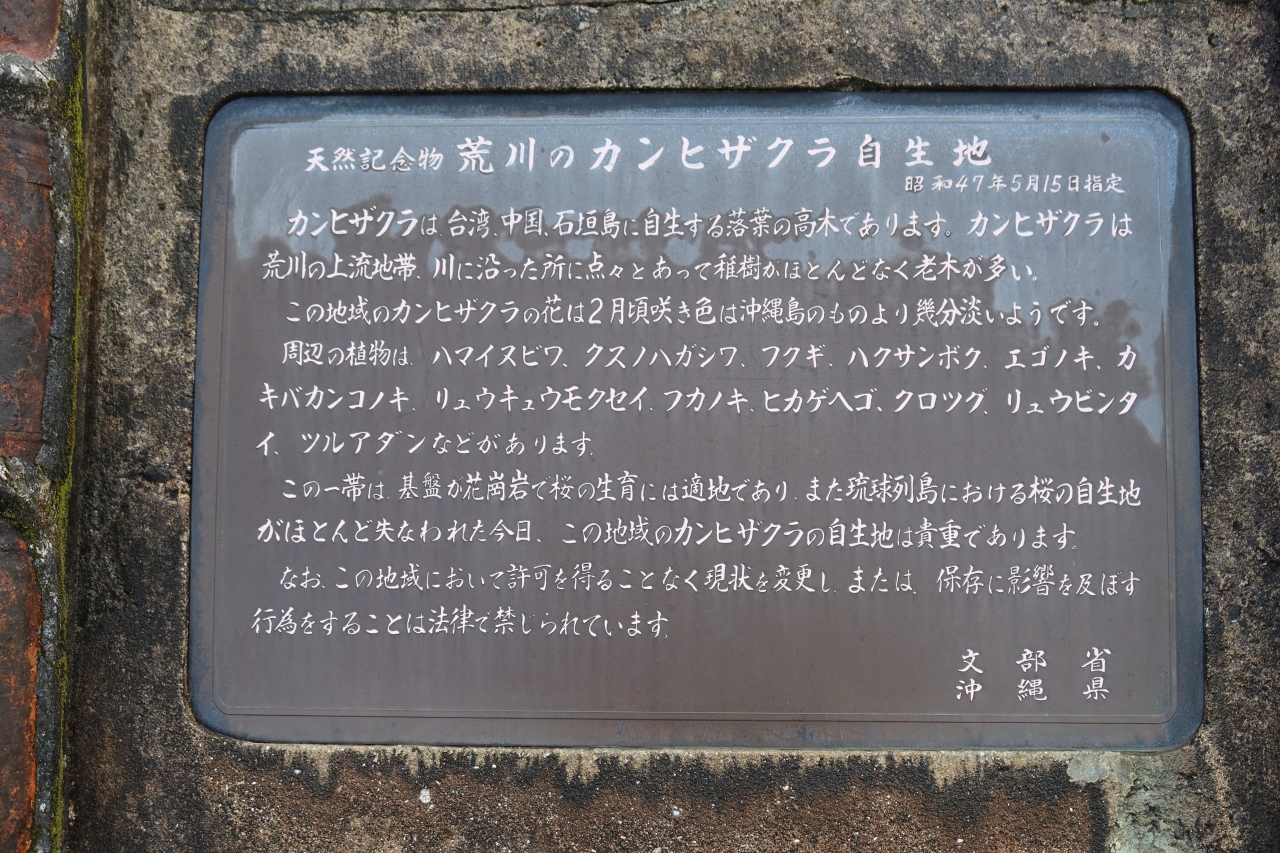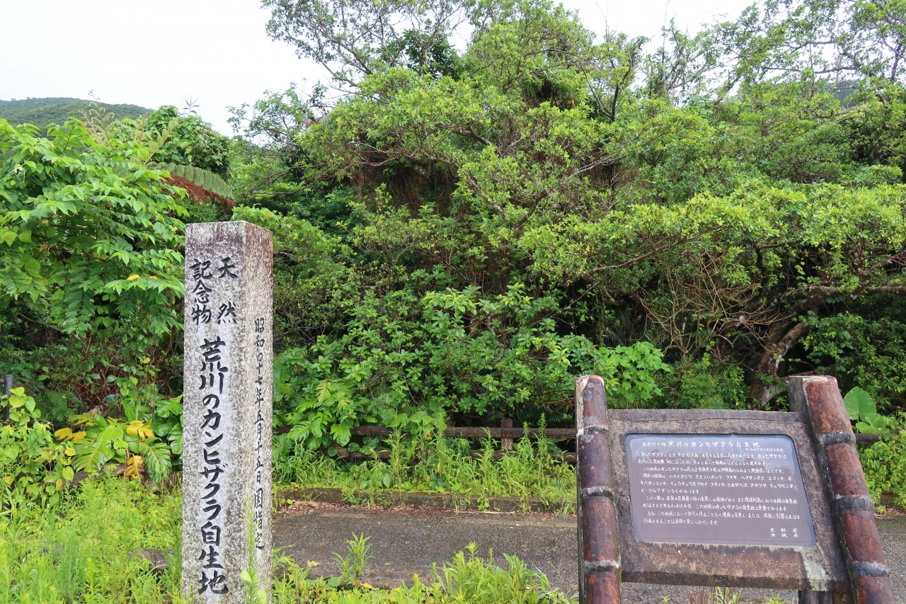 石垣島の米原集落の西側、荒川の近くにカンヒザクラ自生地があります。県道沿いにある駐車場に石碑が設置されており、沖縄にも桜があることを初めて知りました。車を停めて良く見て見ると確かに、桜の樹皮をした木が自生していました。カンヒザクラの花を見てみたいですね。