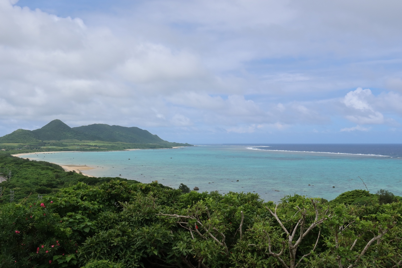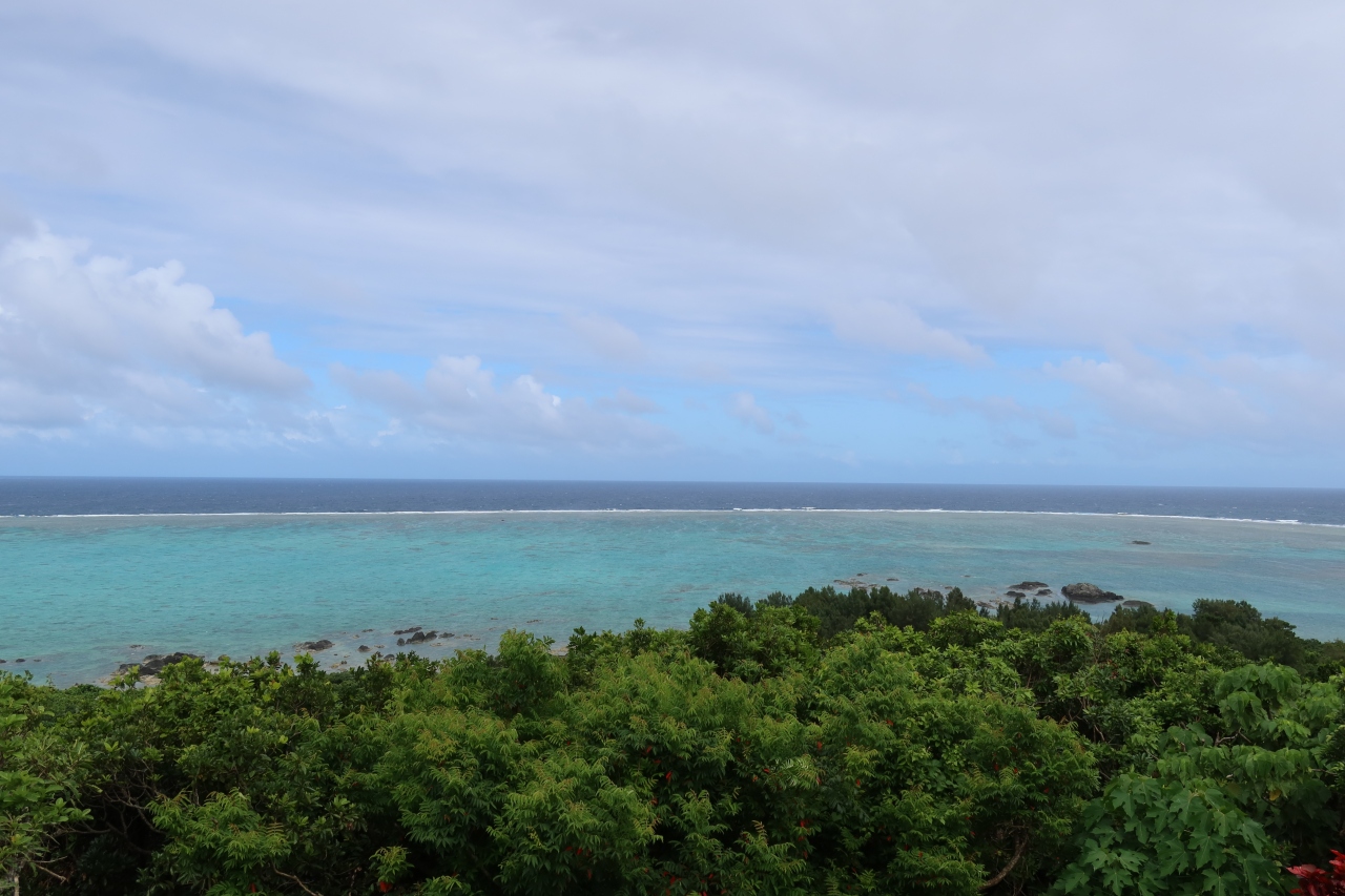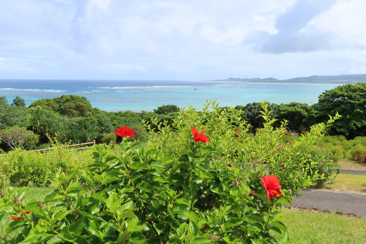 石垣島の東側、平久保半島の付け根近くにある展望台が玉取崎展望台です。国道から山側に入って上って行くと駐車場があり、そこからハイビスカスの花が咲く遊歩道を歩いていくと東屋のある展望台に辿り着きます。ここからの眺めが兎に角最高に良い。海岸沿いに波打つ青い海のラグーンを一望できます。吹き抜ける風も気持ち良く、いつまでも眺めて居たい景色が見られました。