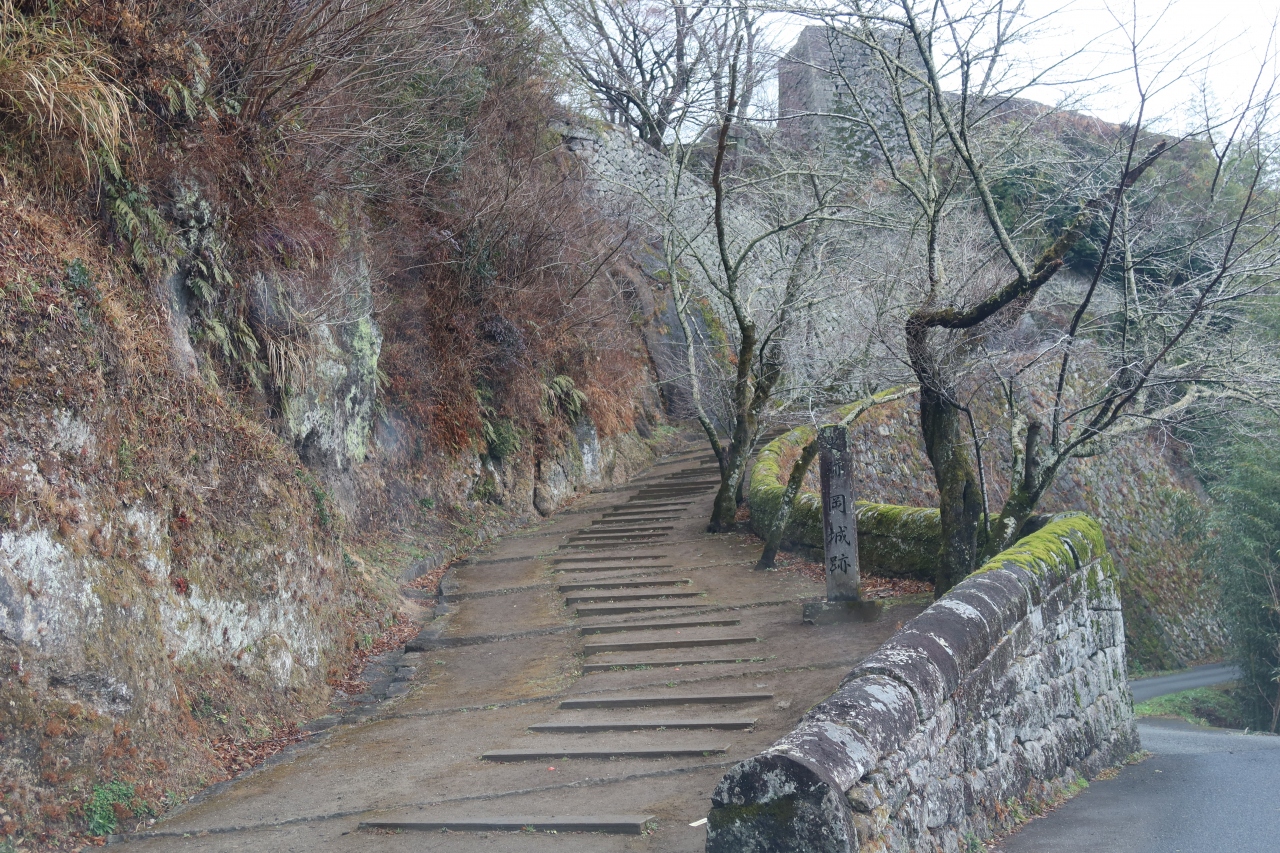 岡藩中川家の居城であった城跡で、現在は石垣以外は残っておりません。しかし、岩山の上に築城された岡城の石垣はとても見事です。私がこれまで見た城跡の中でも1,2を争う程の美しさ。