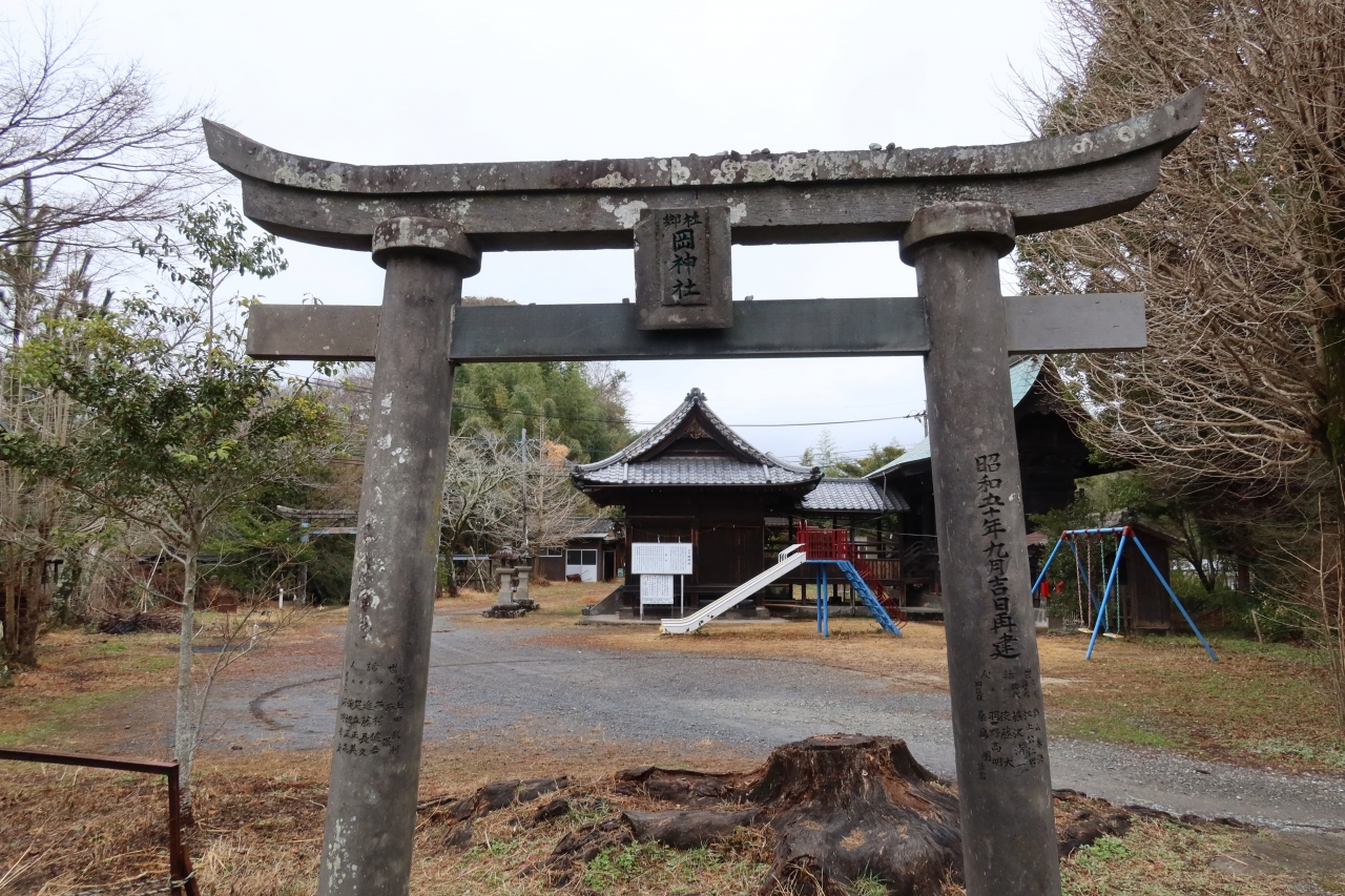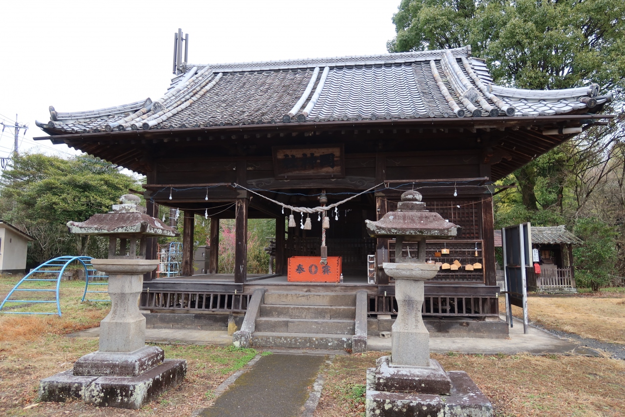 広瀬神社の急な石段を上がりきった左手にあるのが岡神社。こちらが広瀬神社と間違えてしましました。藩主中川氏由来の14柱の神様を祀る神社ですが、遊具のある境内は少し荒れていて、本堂もちょっと傾きかけてます。観光的には見応えはありません。