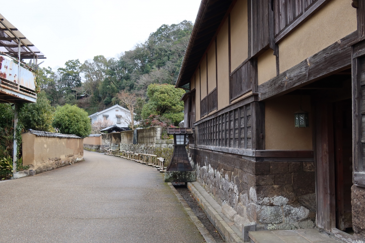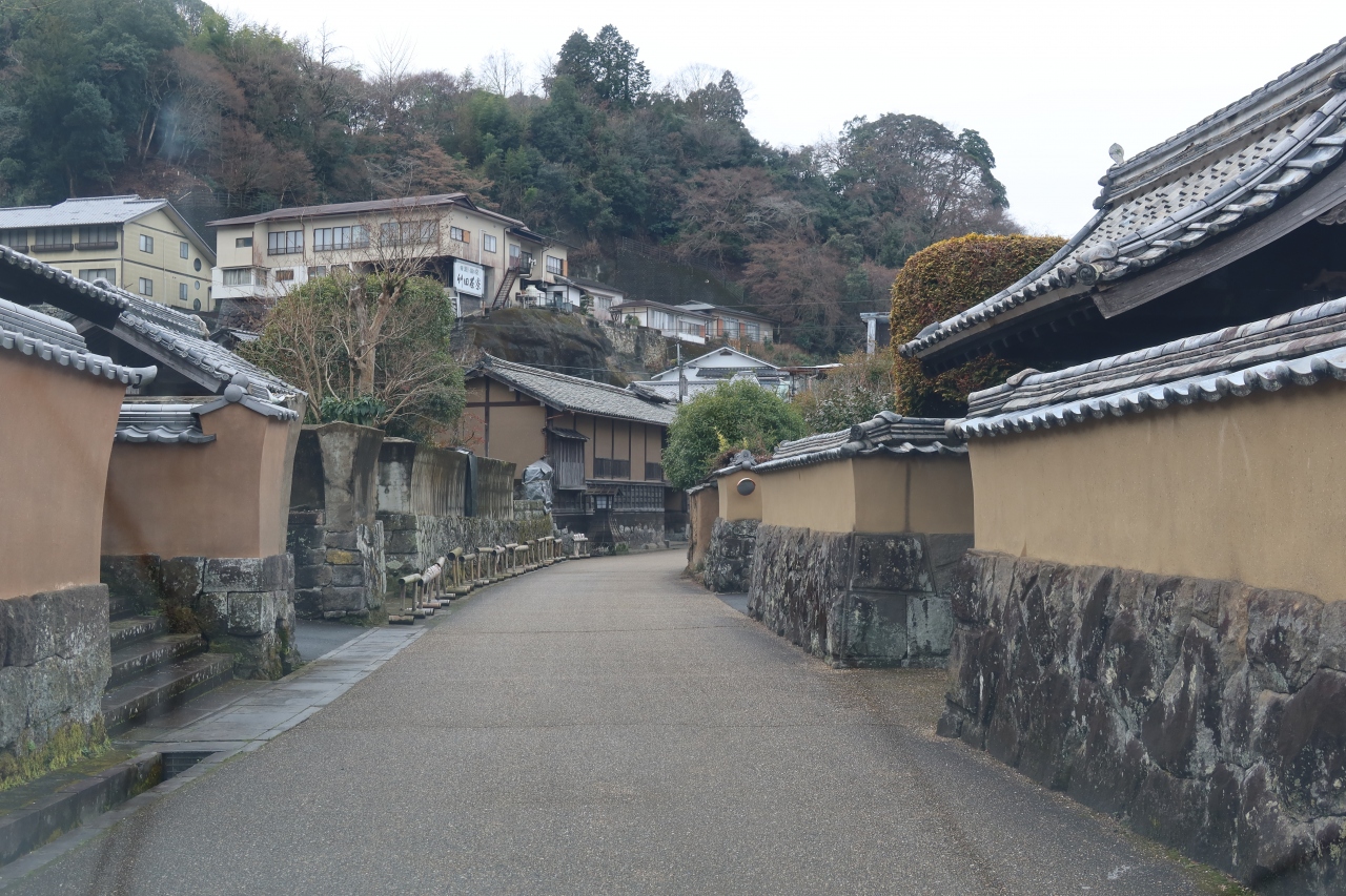 広瀬神社から竹田創生館に至る道が武家屋敷通りです。長さ的には120mほどしかなく短いですが、通りの両側には石垣上に築かれた土塀や、古田家の仲間長屋門、竹田創生館、竹田壮など武家屋敷らしい雰囲気が数多く残っています。歩いて観て歩くのがお薦めです。