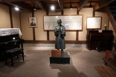 広瀬神社の門を右手に行った所にある黄色い建物が広瀬武夫記念館です。広瀬神社創建50年を記念した作られた記念館で、日露戦争旅順閉塞戦で戦死した軍神、広瀬武夫のロシア駐在時の品々や、軍艦朝日のカッターや写真や手紙を見ることができます。