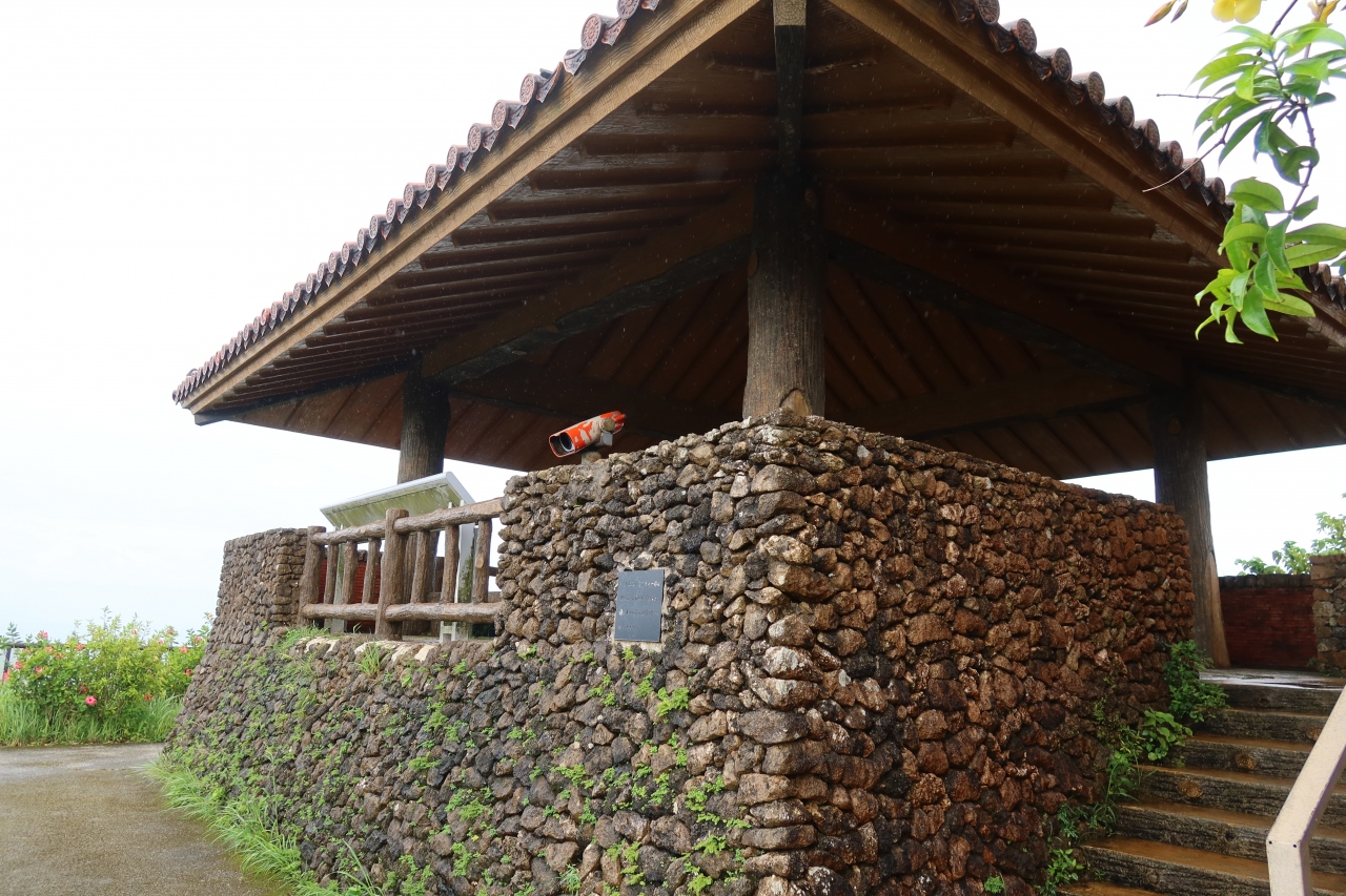 石垣島のバンナ公園の中を通るバンナスカイラインの途中、バンナ岳の頂上にほど近い所にエメラルドの海を見る展望台があります。展望台から眼下に石垣市街地その先に八重山のエメラルドグリーンの海を望むことが出来ます。訪れた時は丁度、カタブイ(局地的な雨)に当たってしまい、竹富島は見られましたが小浜島、西表島は見られなくて残念です。