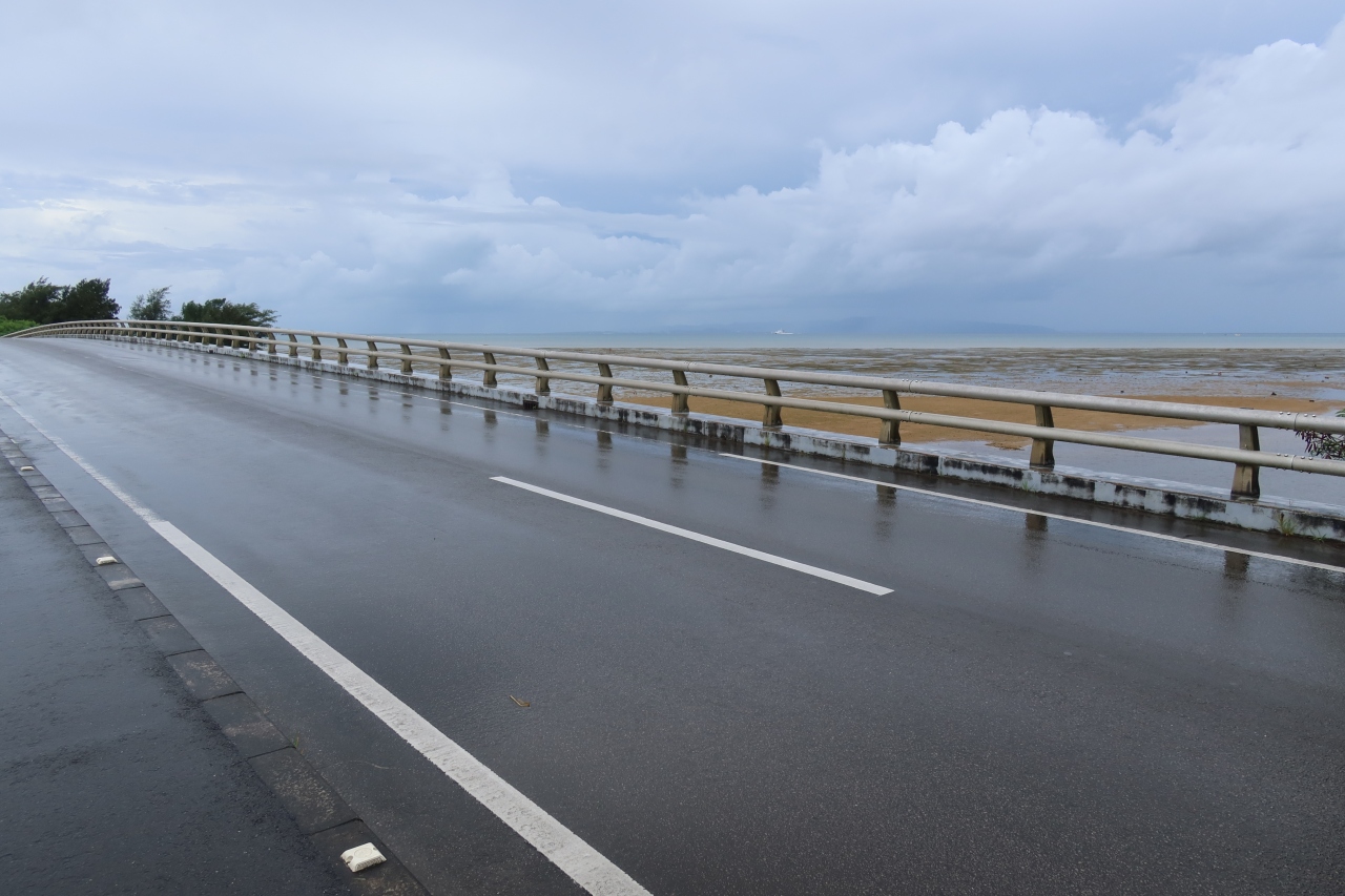 石垣島港から15分程、フサギビーチから北に79号線を行った所にある名蔵湾に架けられた大きな橋が名蔵大橋です。橋の上からは名蔵アンパルの干潟や、マングローブ林を望むことができます。海側も青い海が見られるポイントなのですが、訪れた時は曇りで青い海の絶景は見られなくて残念。川平湾に向かう途中にあり駐車場もあるので、立ち寄ってみてください。
