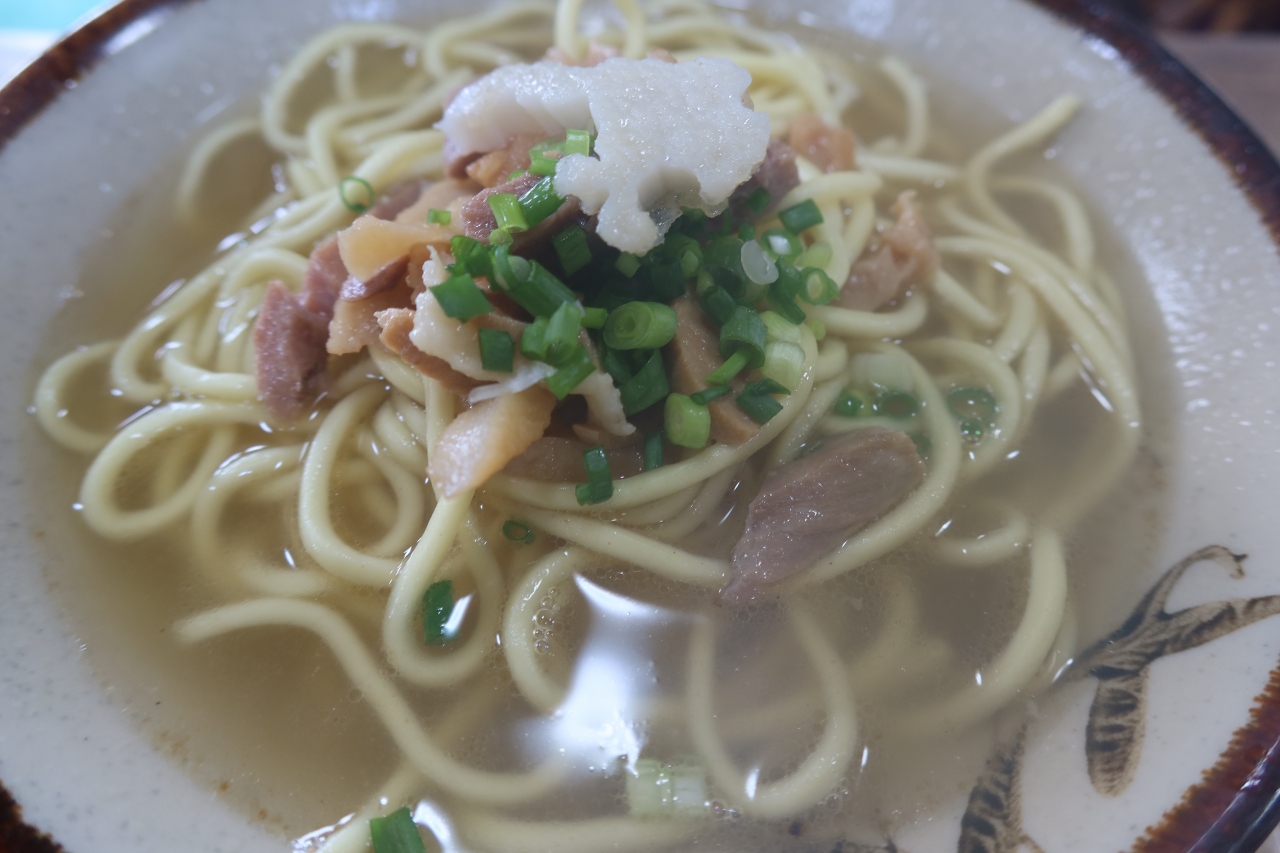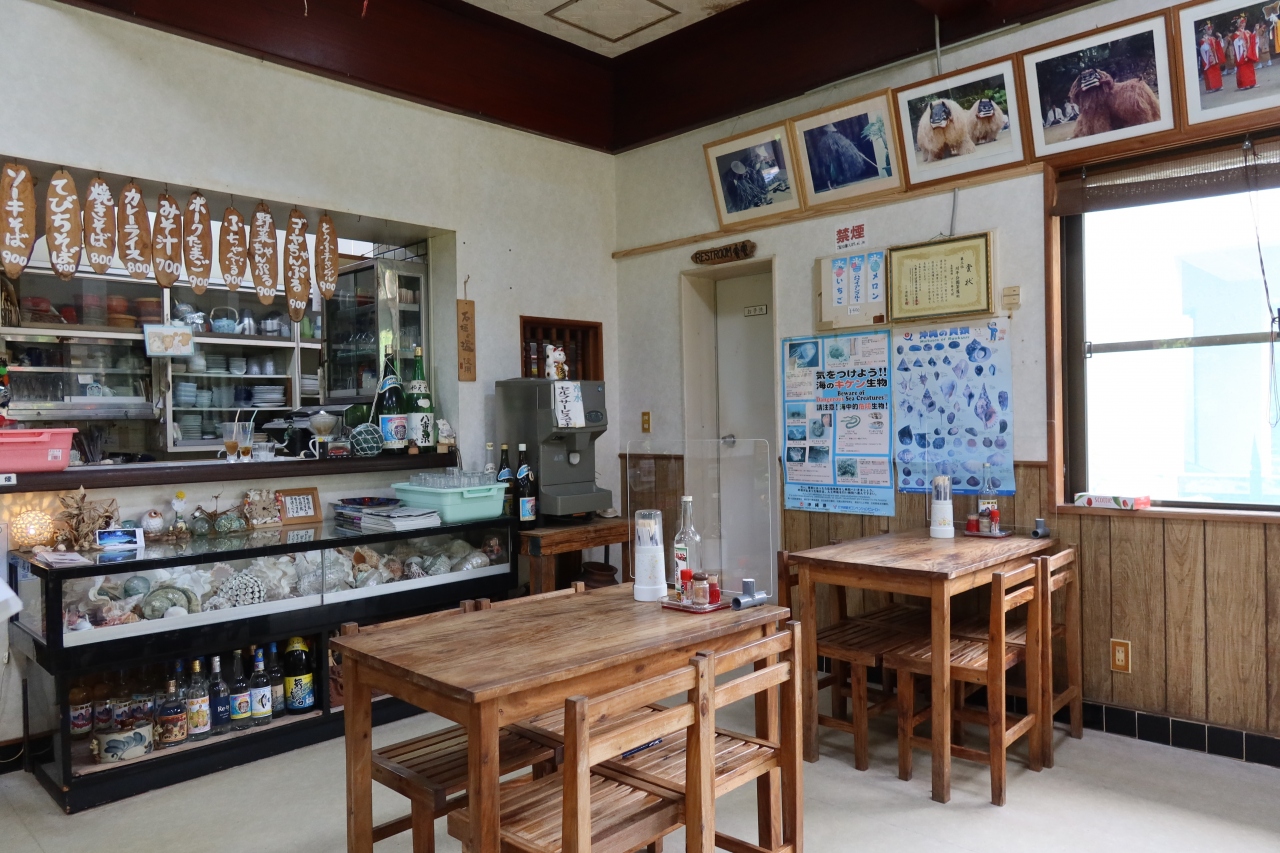 石垣島一番の人気観光地である川平湾にある食堂です。場所は川平公園展望台のすぐ後ろ側にあります。民宿に併設された食堂で、テーブル席と座敷席がある庶民的なお店で、人気メニューは八重山そばとソーキそば。今回その人気のそば二つを2人で頂きました。二つのそばは味は同じで、具が異なります。好みによりますが、私はソーキそばの方が美味しく感じました。