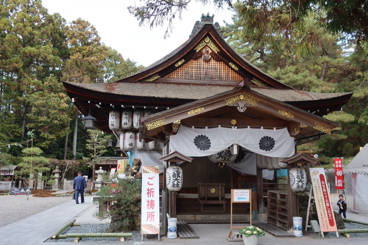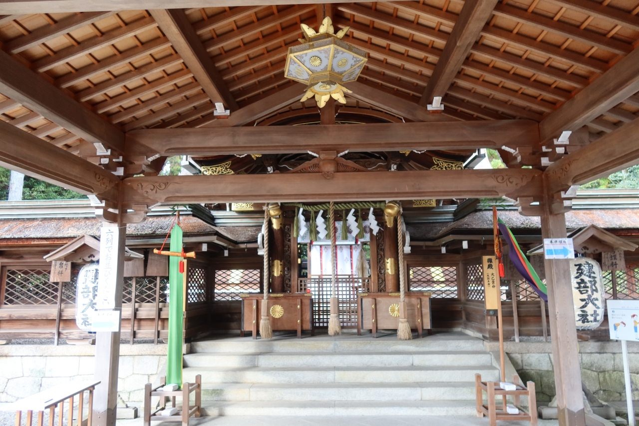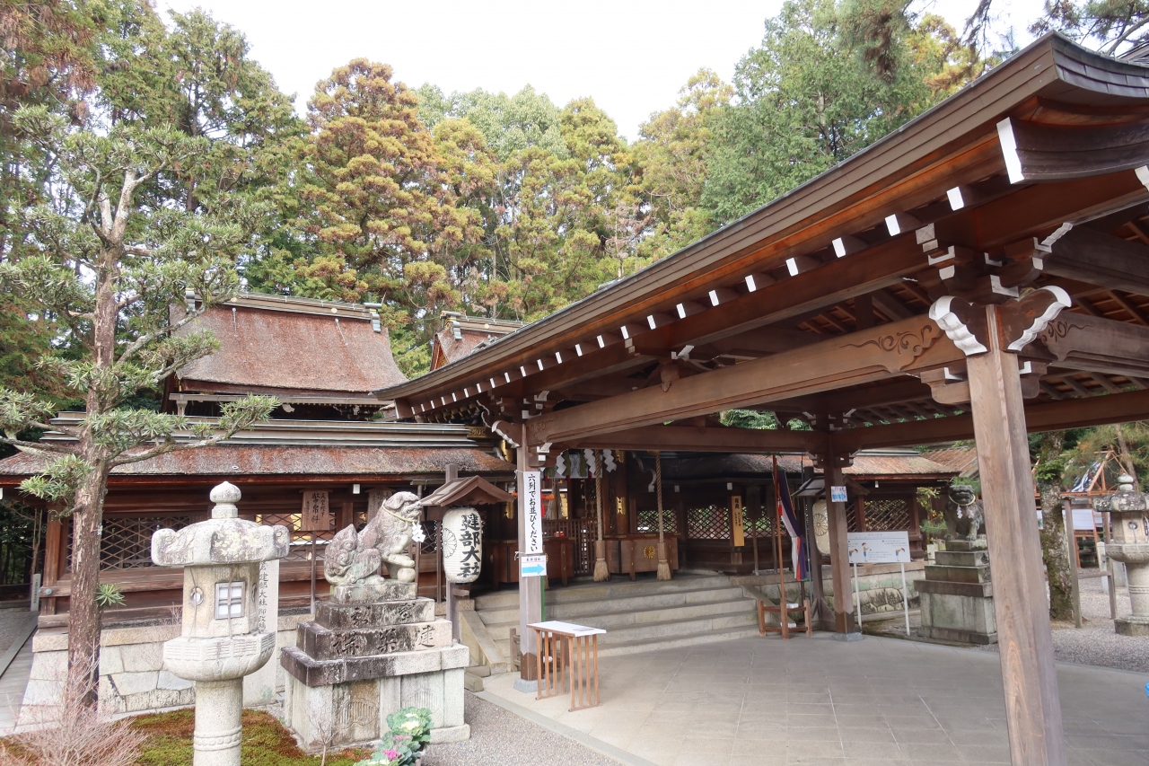 瀬田の唐橋から東に500m程行った所に建部大社があります。建部大社は近江一の宮と知られ、日本武尊と大己貴命が祀られ、拝殿左右には日本武尊に関わる神が祀られており、とても立派な神社でした。厄除開運のご利益があります。