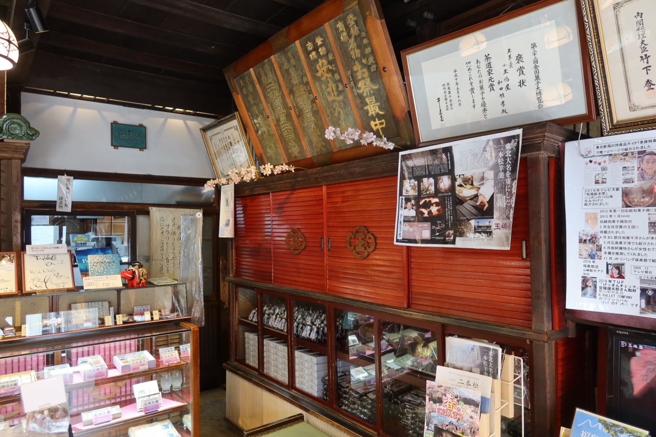 二本松駅から150m程の所、旧国道4号線に面した所に風格のある古い店構えの和菓子店があります。それが玉嶋屋です。江戸時代より続く老舗店で玉羊羹(風船に羊羹を入れたもの)が有名でテレビでも何度か紹介されています。玉羊羹を買いに行ったのですが、目に入ったのがいちご大福。これまでに何度かいちご大福を食べたことはありましたが、これほど美味しい物は食べたことがありませんでした。大きなイチゴが入っており、餡子が絶妙です。店頭でした買えないと思いますがお薦めです。