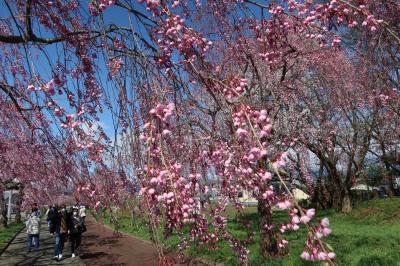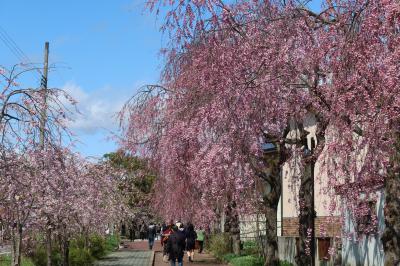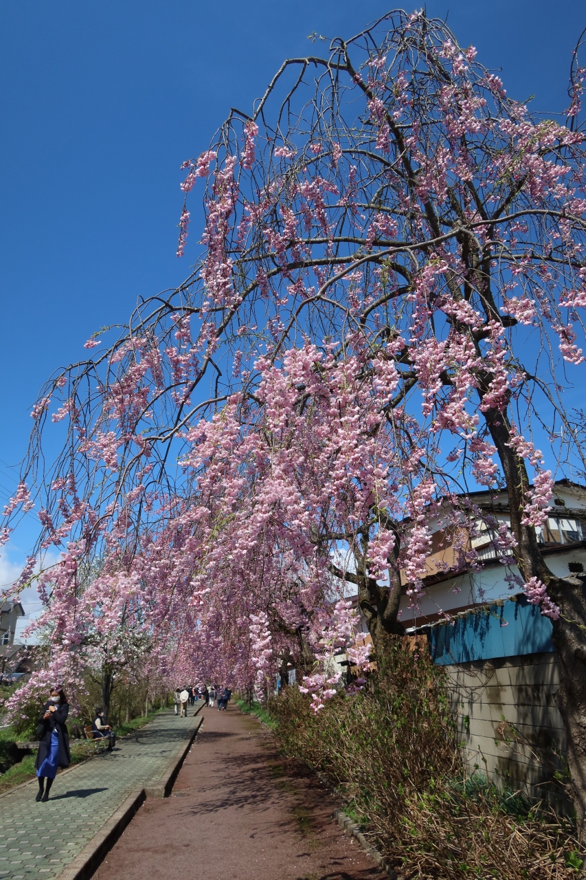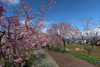昭和59年まで喜多方駅と熱塩駅を結んでいた旧国鉄 日中線の線路跡が自転車歩行者道になっています。それが日中線記念自転車歩行者道です。4月になると道に植樹された枝垂れ桜が一斉に咲き、日中線記念自転車歩行者道は枝垂れ桜の廻廊となります。これを目当てに今回訪れました。約3kmもある道は歩きながら桜を楽しむのに良く、ほんとの見事でした。