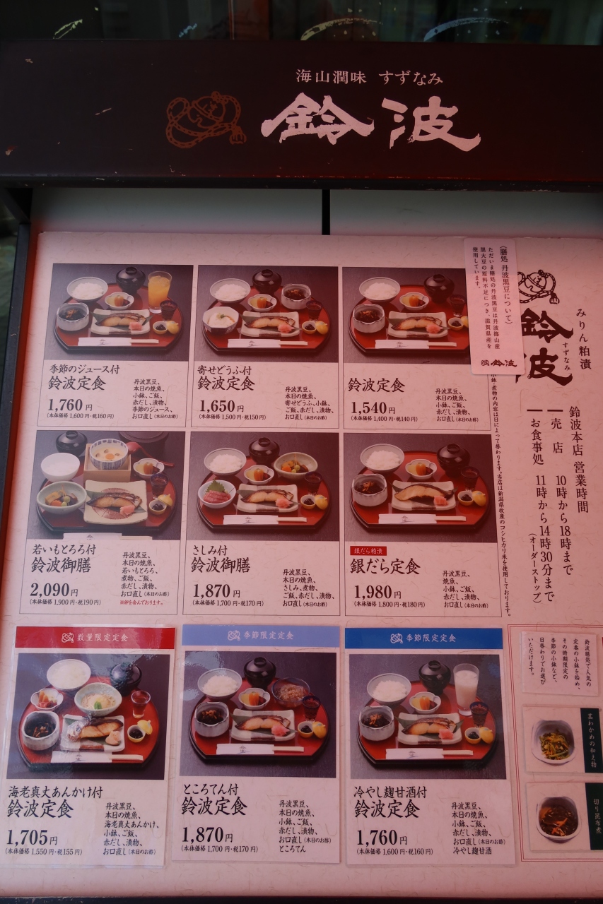大津通から三蔵通りを西に40m程いった先に鈴波があります。鈴波は大和屋守口漬総本家が出がける魚介の粕漬けで知られるお店ですが、店舗の奥に食事出来るところがありそこが膳処です。鈴波定食をはじめ焼き魚の定食があり、頼んだのは銀だら定食。粕漬の味が最高に引き出るのが銀ダラ、ご飯のお替りもでき、大満足の味でした。