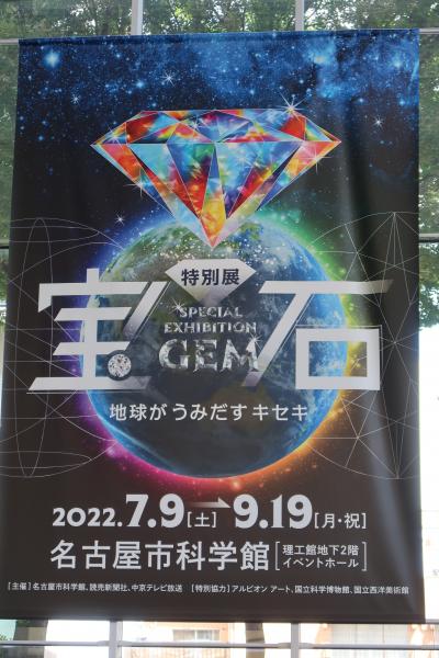 白川公園の北側にある球体の嵌め込まれた大きな建物が名古屋市科学館です。今回「宝石展」を見に行ったのですが、開館前の時間に行くと長蛇の列。そんなに人気なのかと驚いたのですが、長蛇の列はプラネタリウム見学の列でした。くそ暑い夏にも関わらず早くから並んでいるとは相当の人気のようです。「宝石展」はさほど並ばずに入れました。宝石の原石や、宝飾品、宝石の成り立ち等を、見ていると美しさにうっとりでした。