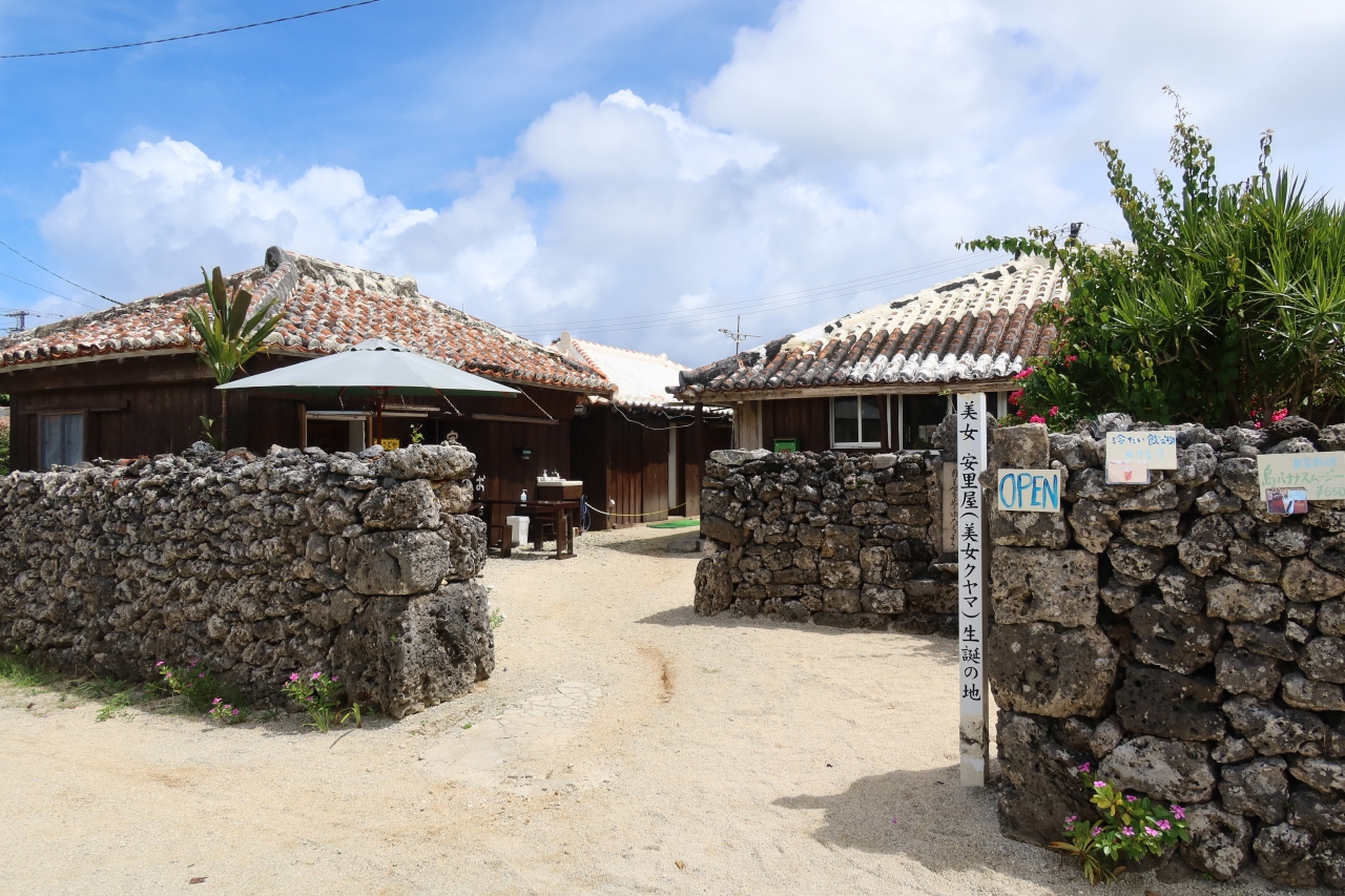 竹富島にあるなごみの塔から南に50m程の住宅街の中に安里屋クヤマ生誕の地があります。安里屋クヤマは、民謡「安里屋ユンタ」で歌われる八重山地方の美女です。その安里屋クヤマ生誕の地は安里屋のお店となっています。お店の入口に白い杭で碑があるだけで、あまり人気はない様でした。