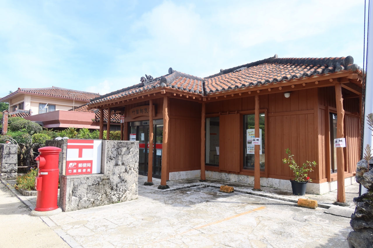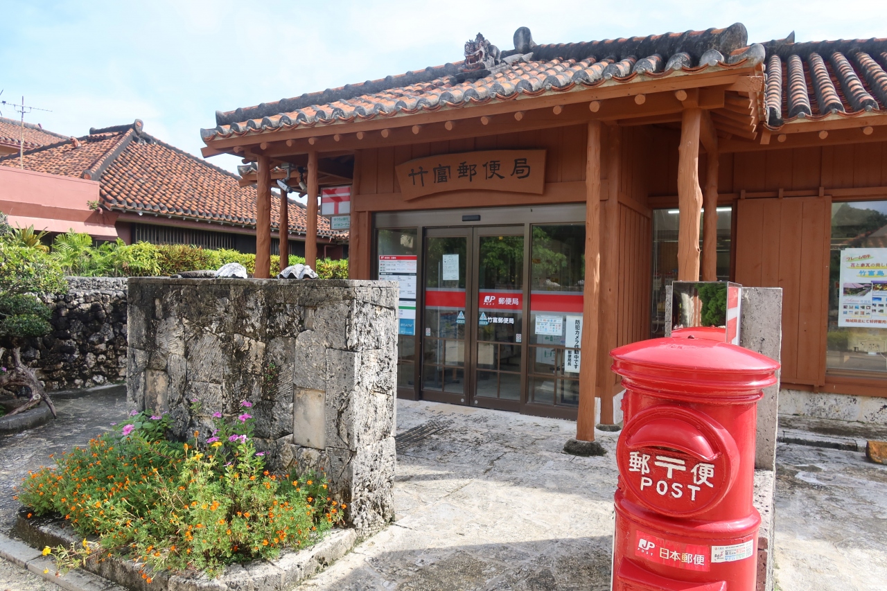 竹富島の中央の集落の中にある竹富島唯一の郵便局です。国の重要伝統的建造物群保存地区にあり、八重山地方らしい赤煉瓦の屋根が街並みに馴染んでいます。特に観光する場所ではないですが、この郵便局から手紙を出すと竹富島の消印が押されるので、来島記念になること間違え無し。時間があれば手紙を出すと良いでしょう。