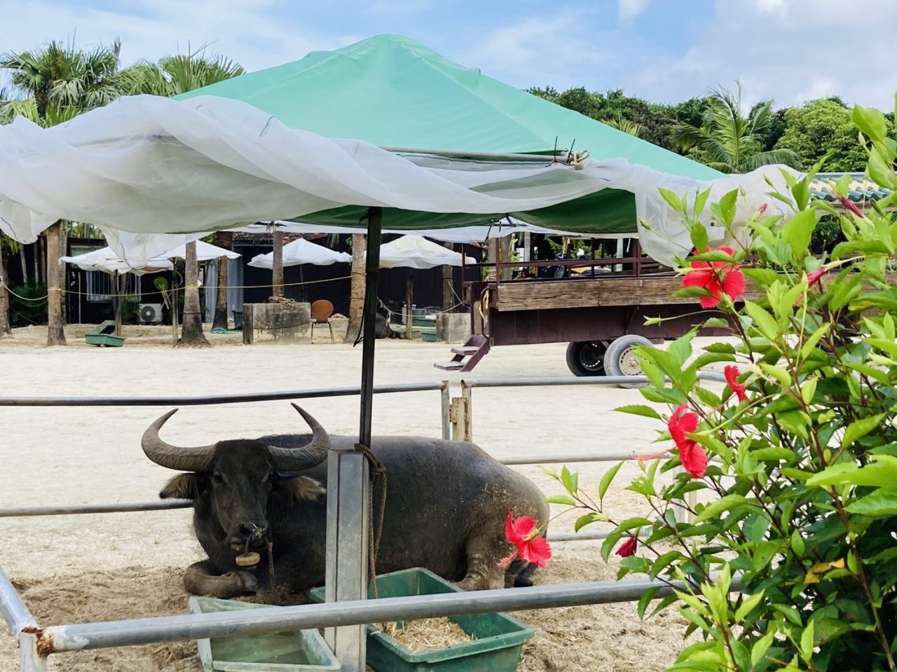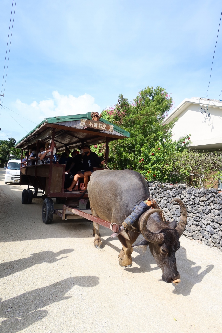 竹富島の集落の主要な所しかめぐりませんが、時々、動かなくなる水牛や、ゆっくりと進むのどやかな雰囲気が味わえるので、お薦めです。