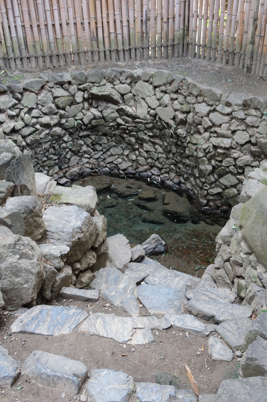 随心院の境内、薬医門の前の道を進んだ先の竹藪の中に小野小町化粧井戸があります。小野小町がこの井戸の水で顔を洗ったと伝わる井戸です。井型の釣瓶で救い上げる井戸だと思いきや露天掘りの井戸で、底に下りると今も澄んだ水が見えます。嘘かホントか分かりませんが、この井戸の水は美容に効くかもしれませんね。
