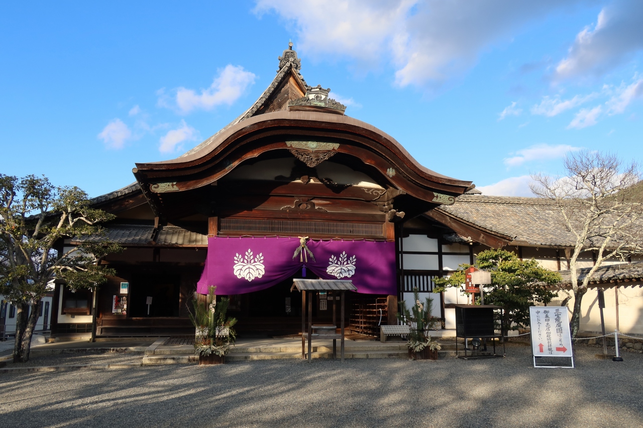 地下鉄東西線の小野駅から東に300m程行った所に随心院があります。真言宗善通寺派の大本山である寺院で小野小町縁の寺として知られています。訪れて見るとまず目に入るのが薬医門。とても立派な門で天皇家縁の寺院であることが伺えます。中には極彩色に描かれた小野小町の一生を描いた襖絵等があり意外とインスタ映えするものがあります。本堂は改修工事中で拝観できなかったのが心残りです。