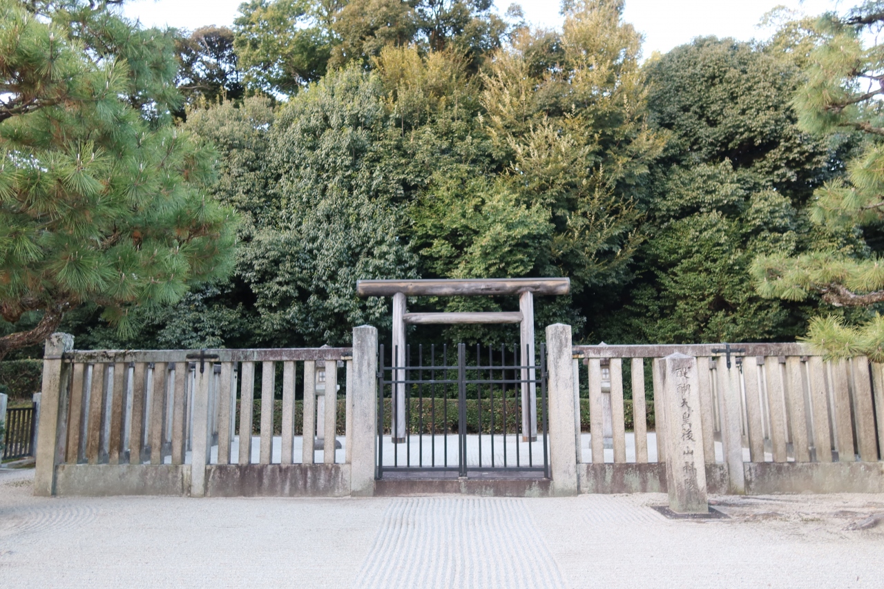 随心院を東に約300m程行った住宅街の中に突如森の様な小山が現れます。そこが醍醐天皇陵 後山科陵です。第60代の天皇である醍醐天皇をが眠る御陵です。周囲を回って見ると、綺麗に丸く、直線に延びる整備された参道が印象的な御陵でした。