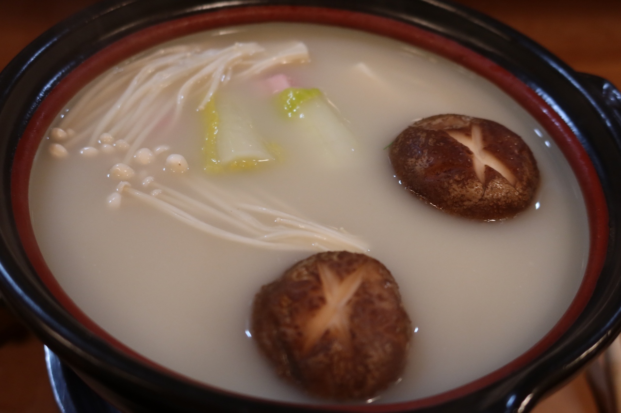 祇園白川に架かる大和橋から北に50m程行った所に、ぎをん縄手 とり安があります。年末は予約が必須で、今回予約して水炊のコースを食べに行きました。肝煮から始まり、前菜、鳥焼き、そして水炊と続くコースで、何と言っても鶏を煮込んだスープが絶品。美味しくてスープをお替りするほどの味です。〆に雑炊と完璧なコースで冬は特に美味しく感じました。