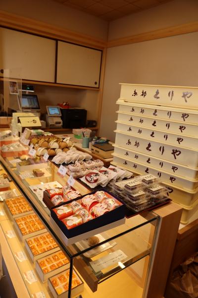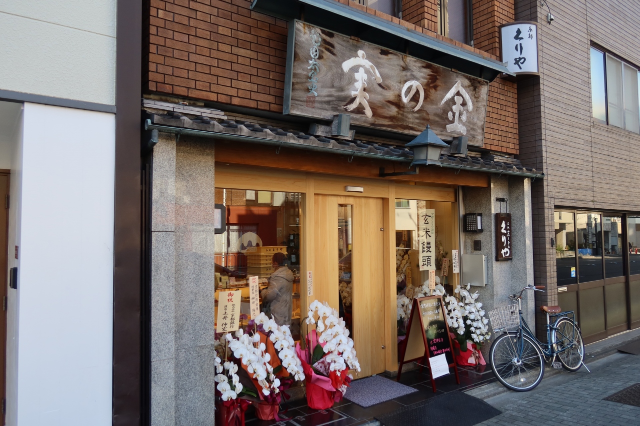 丸太町油小路交差点の近くにある栗菓子の専門店です。この店の名物は「金の実」と名付けられた栗甘納豆。午後には売切れることも多々ある人気菓子で、朝10時過ぎに買いに行きました。「金の実」は一つ一つ包装されており、しかも量り売り。この為買うのに時間が掛かります。たまたま、先客に大量買いの人がいて、その対応だけで15分近くも掛かり、待たされました。人を呼ぶなり、大量買いの人は後回しにするなどしてもらいたい所です。