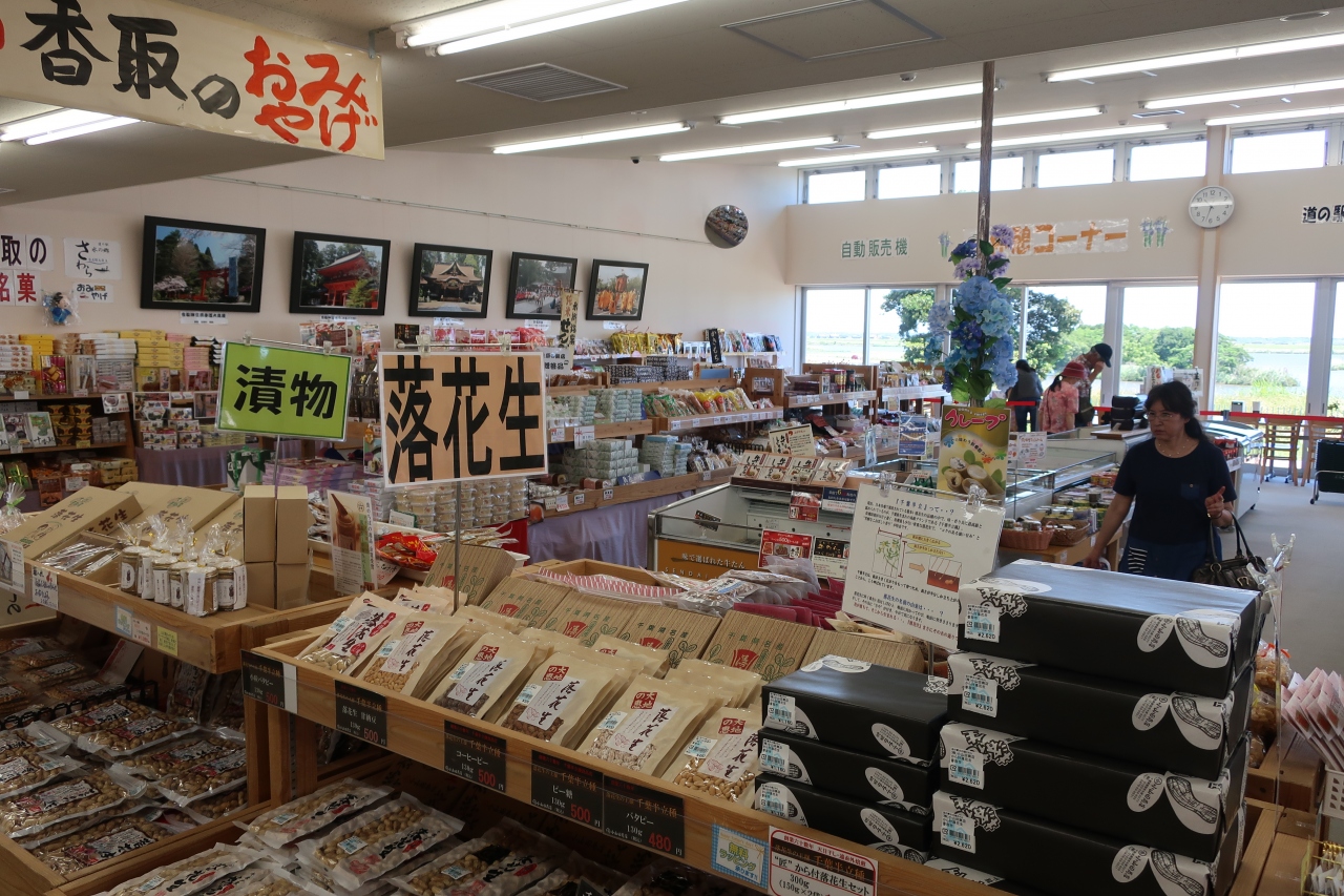 香取市を通る国道356号線と利根川に面した道の駅と川の駅の複合施設です。これまで幾つもの道の駅に寄ったことがありますが、この様な駅施設はなく珍しいです。店内は他の道の駅と大差はなく、地場産の農産物売り場、フードコートがあり、多くの人でにぎわっています。利根川の船着き場からアクセスもできますが、船で立ち寄る人はそんなに居ないというのが実態だと思います。