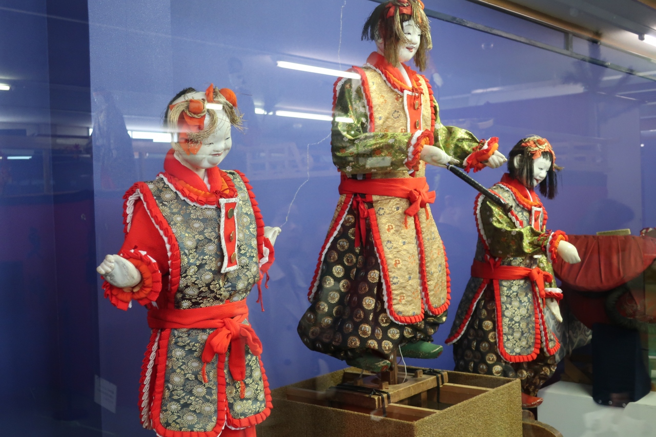 犬山城から南に延びる本町通りに長屋門があります。その奥にあるのが城とまちミュージアム からくり展示館です。犬山祭りの山車からくり、座敷からくりの人形を展示する施設で、多くのからくり人形とその構造が見られる展示が面白いです。そして、からくり人形の実演も日に何回か行われ間近でからくりの動きを見られます。同じような展示なので飽きてしまうところもあります。