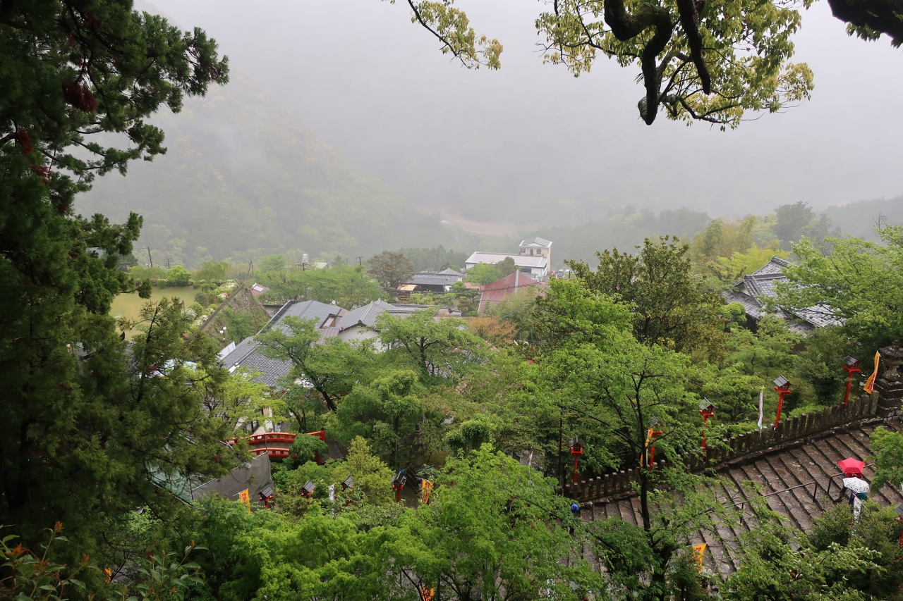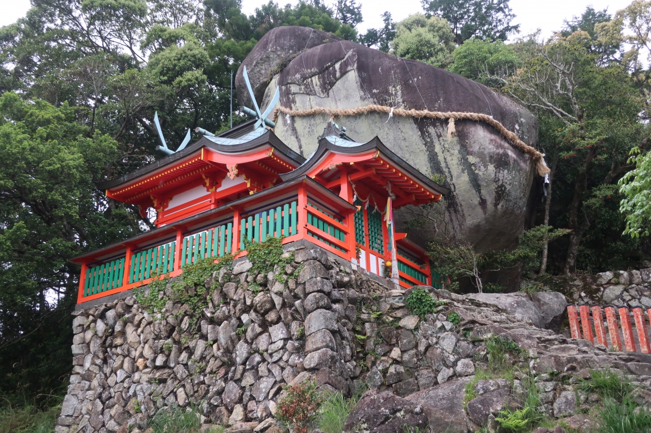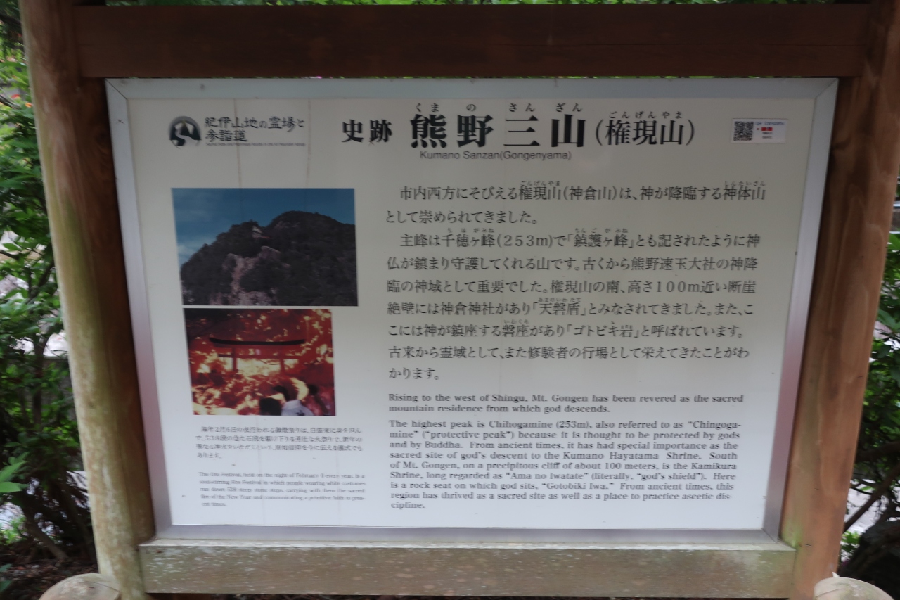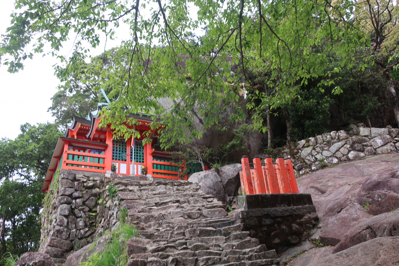 新宮市の西側にある神倉山のにあるゴトビキ岩を御神体とする神話の時代から登場する神社が神倉神社です。麓から神社まではとても急な参道の石段を上らなければならず、はしごを上る様な感覚でした。約20分程かけて上ると鳥居が見え、その奥に大きなゴトビキ岩、その脇に神倉神社の拝殿があります。そして、そこからは眼下に新宮市街が一望できます。